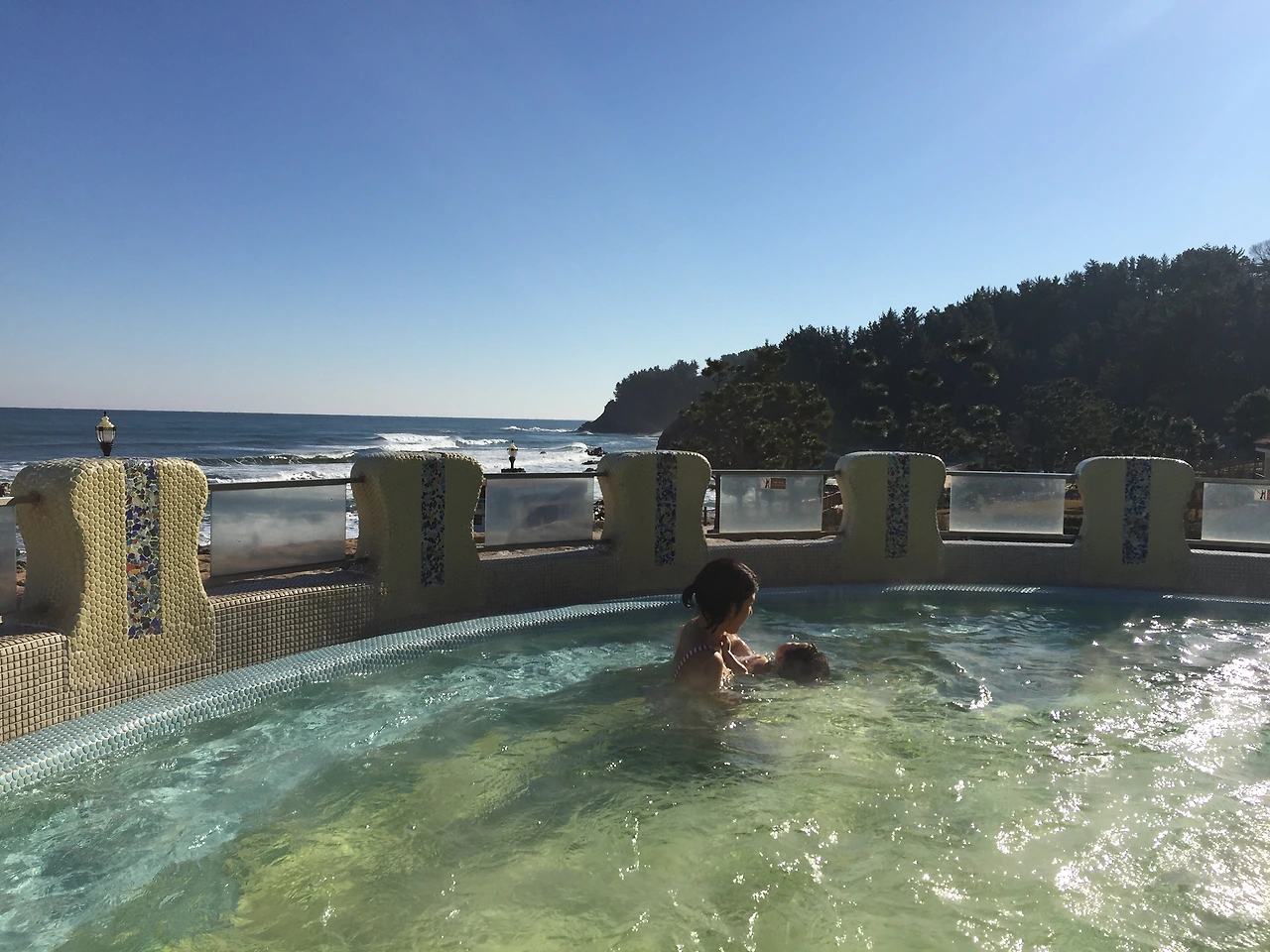 한겨울에 갔는데도 뜨끈한 야외 해수 풀장에서 놀 수 있었던 곳. 실내에는 유아들을 위한 물놀이 시설도 잘 구비되어 있어서 안전하게 놀 수 있습니다.