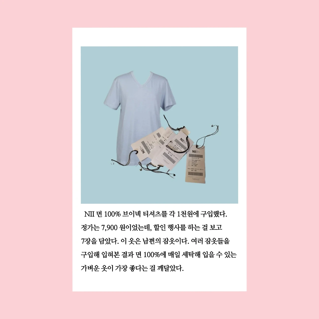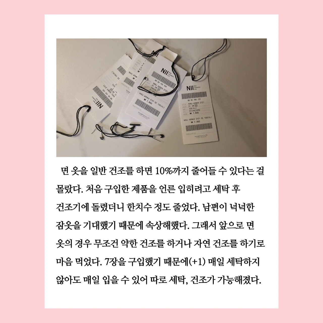 남편의 7일 잠옷 구입. 면 100%, NII 기본 면티.