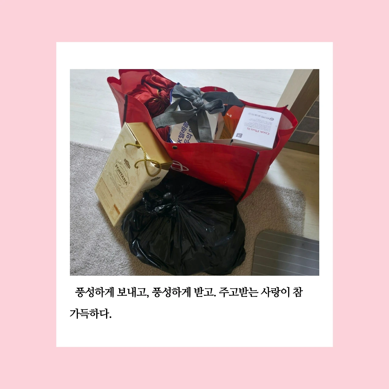 주는 행위 안에는 ‘사랑받고 싶은 마음’과 ‘나답게 사랑하고 싶은 마음’이 동시에 존재한다. 그래서 이제는 인정받기 위해서가 아니라, 내가 평안하기 위해, 그리고 내 마음이 충분하고 따뜻할 때 건넬 수 있는 선물을 하고 싶다. 선물의 본질은 결국 ‘관계 속의 나’를 어떻게 표현하느냐의 문제이기 때문이다. 이번 명절의 선물은 어머니를 위한 것이기도 하지만, 결국 내가 나를 이해하고, 내가 쉴 수 있는 마음을 회복하기 위한 선물이기도 했다. 참 좋았다.