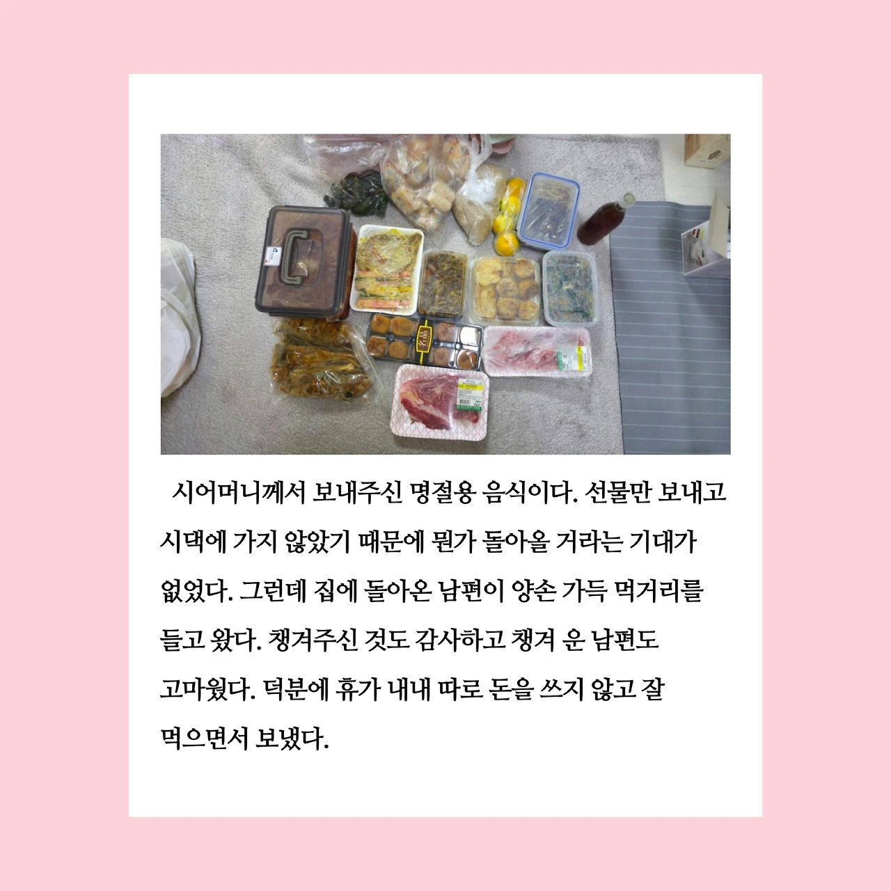거기에 기대치 않게 용돈과 먹거리들을 가득 보내주셨으니 이번 명절 풍성한 부자는 내가 되었다. 행복한 명절 기록을 잊어버리기 전에 이곳에 남긴다.