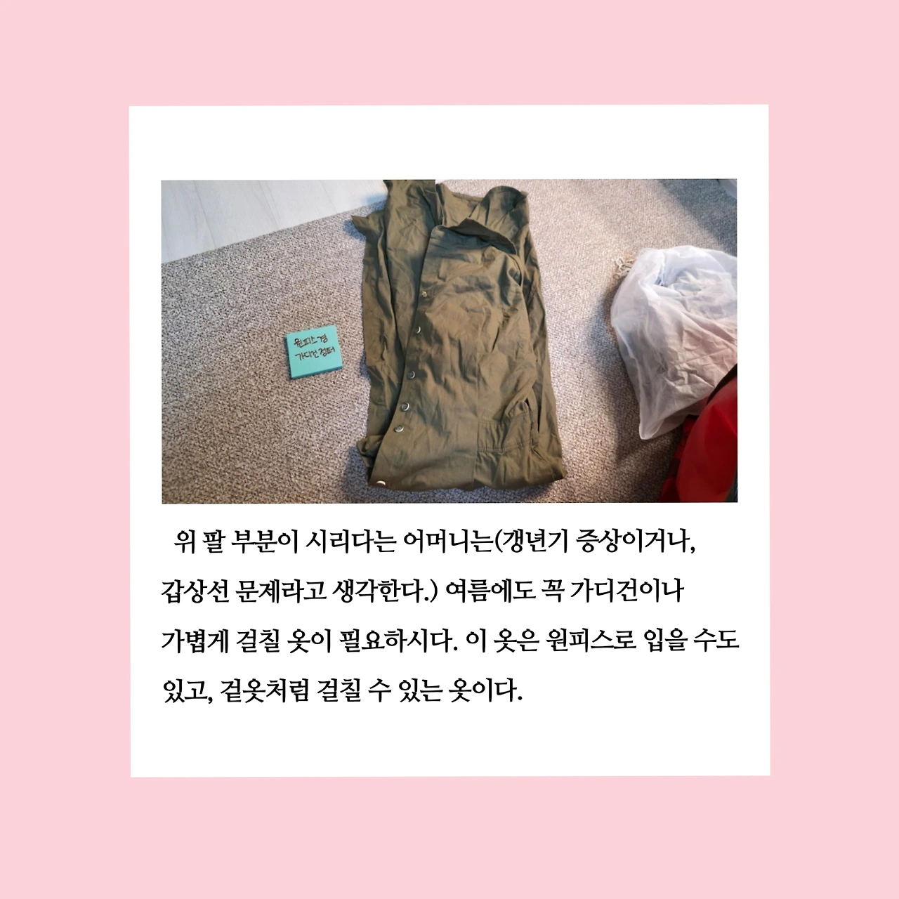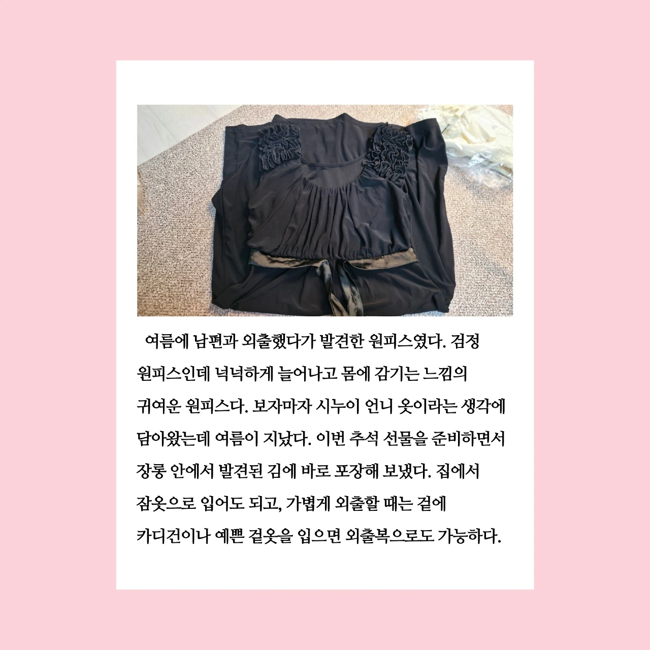 이번 명절을 위한 선물들을 준비하면서 어머니 선물 전용 농을(전용 장롱 칸을 만들어 놓음) 열어 물건들을 골랐다. 평소 하나씩 모아두기 때문에 이번 선물도 무리 없이 준비할 수 있었다. 선물을 안 할 수 있으면 좋겠지만, 반드시 해야만 하고 상대방이 원하는 거라면 미리 준비하는 자세가 필요하다.