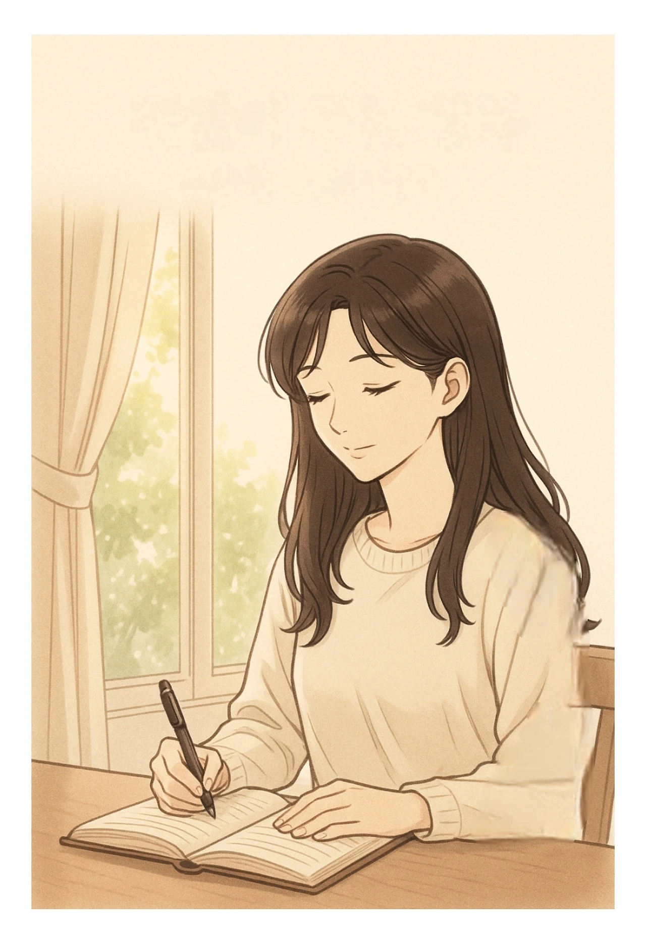 나른한 오후 볕이 드는 카페 창가에 앉아