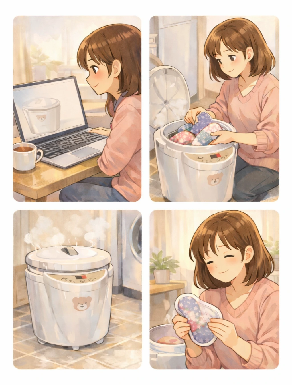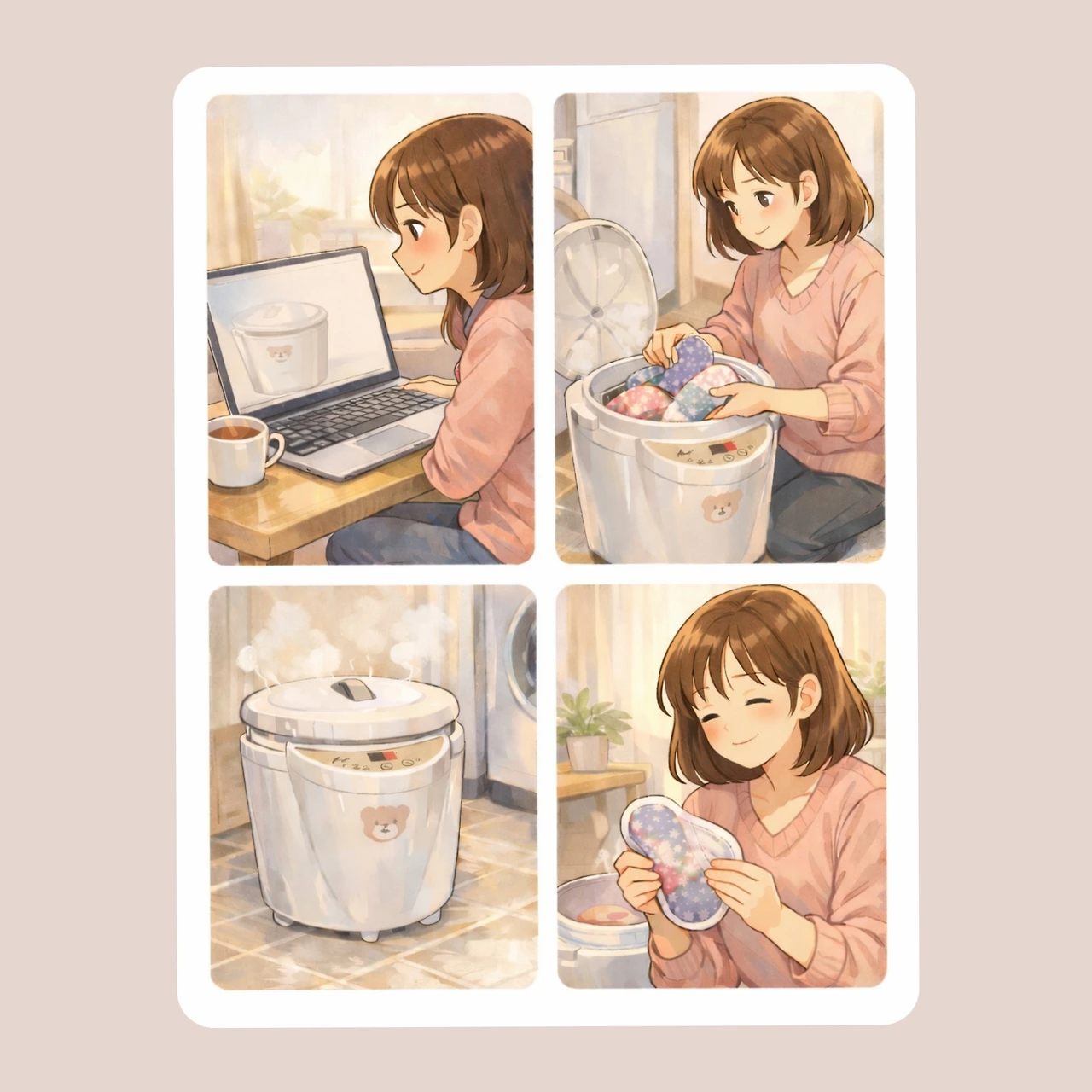선물을 준비하면서 갑자기 이 제품이 내게 필요하지 않을까라는 생각을 하게 됐다. 20대 중반(그 이전부터겠지만 언제부터인지는 모르겠다) 무렵부터 천 생리대를 사용했기 때문에 매달 세탁과 소독 과정이 힘들었다. 그런데 이 제품은 넣기만 하면 알아서 삶아진다. 그런 생각을 하다 보니 내가 먼저 필요하겠는데라는 생각에 이르렀다. 그럼에도 매달 2~3번 사용하려고 16만 원 기계를 구입하는 게 합리적일까라는 생각이 들었다. 이런저런 생각들을 하다 결국 구입했다. 거의 15년을(그 이상) 여성용품을 구입하지 않았으니 기곗값 정도는 회수하지 않았을까라는 생각을 했다. 그리고 드디어 엊그제 사용해 봤다. 어찌나 편안하고 좋던지, 진작 구입할 걸이라는 마음이 들었다.