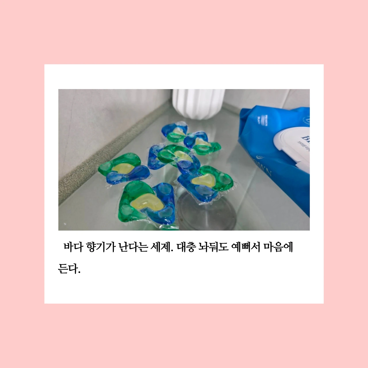 지금 세탁기 옆에 놓인 세제들을 보며 느끼는 뿌듯함도 비슷한 감정일지 모른다. 나는 물건을 사는 게 아니라, 가득 차 있는 장면을 사고 있었던 건 아닐까. 비어 있지 않다는 안도감을 사는 건 아닐까. 보석처럼 예쁜 세제를 보며 매일 세탁하는 나를 위한 소비야라고 말해 본다. 틀린 말은 아니다. 하지만 몇 년 치를 쟁여 두는 일까지 나를 위한 일은 아닐지도 모른다. 왜냐하면 공간도 돈이고, 관리도 에너지가 많이 필요한 작업이기 때문이다. 완벽한 미니멀리스트가 되지는 못하더라도, 적어도 멈출 수 있는 사람이 되고 싶다.