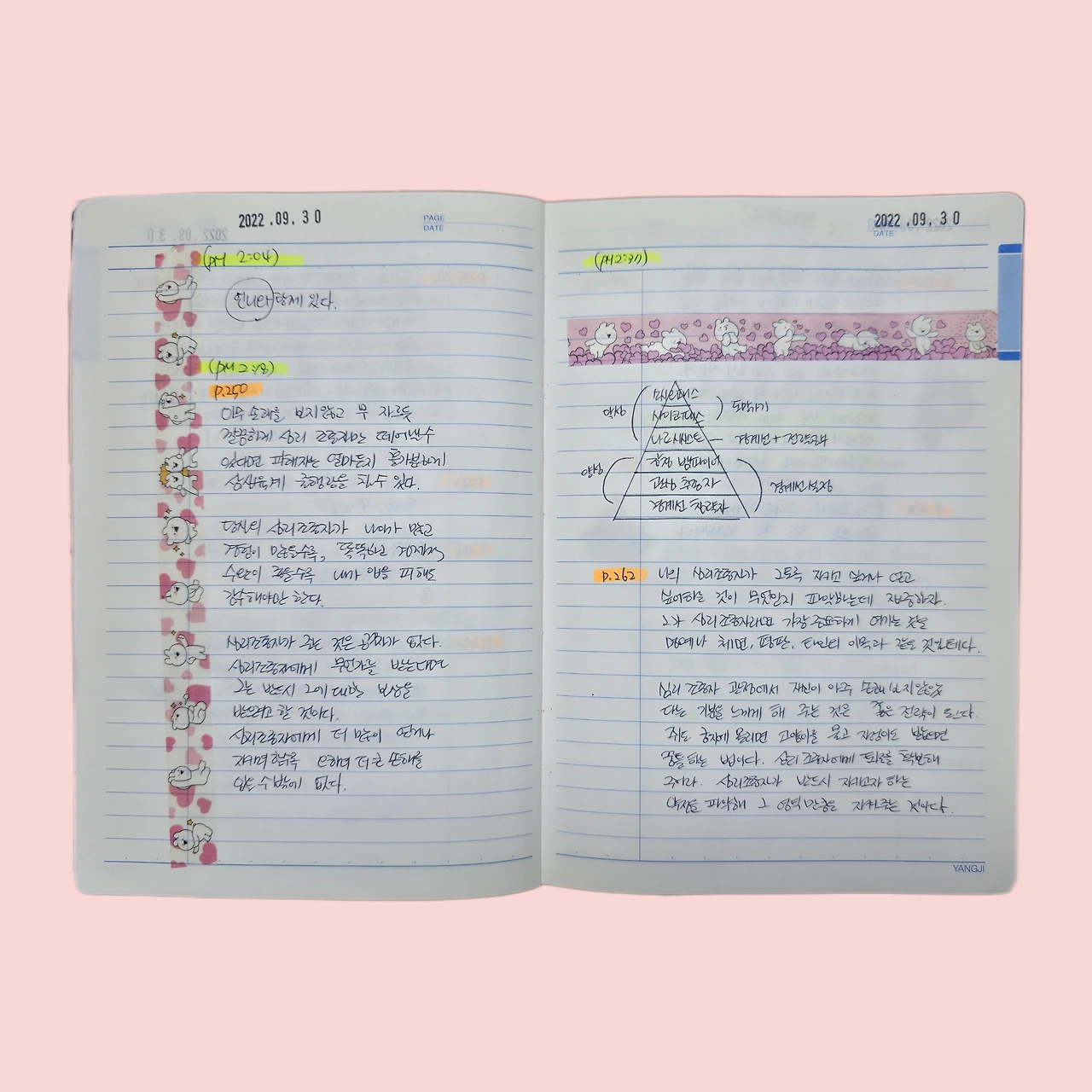편안한 옷으로 갈아입은 언니와 오후 시간을 함께 보냈다. 언니와 비슷한 시간을 과거에 많이 가졌었기 때문에 언니와의 시간은 공기를 들이마시는 것처럼 편안했다. 언니에게는 느슨하면서 편안한 클래식 음악이 흐르는 느낌의 분위기가 있다. 그래서 음악이 없어도 느슨하면서 편안한 오후 시간을 나른하게 함께 보냈다. 언니는 언니가 가져온 책을 읽으면서 공책에 글을 적기 시작했고, 나는 읽던 책을 읽으면서 공책에 필사하기 시작했다. 이 시점에 얼마나 글을 많이 남겼는지 지난 5년이 생각나지 않으면 5년 동안 썼던 일기들을 들춰보면 된다. 이 글도 과거 일기장들을 열어놓고 쓰는 중이다. 기록의 중요성을 정말 매일 실감한다. 그날의 장면이 이렇게까지 또렷하게 남아 있는 것도, 그때의 감정이 단순한 일상이 아니었다는 것을 말해주는 것 같다.