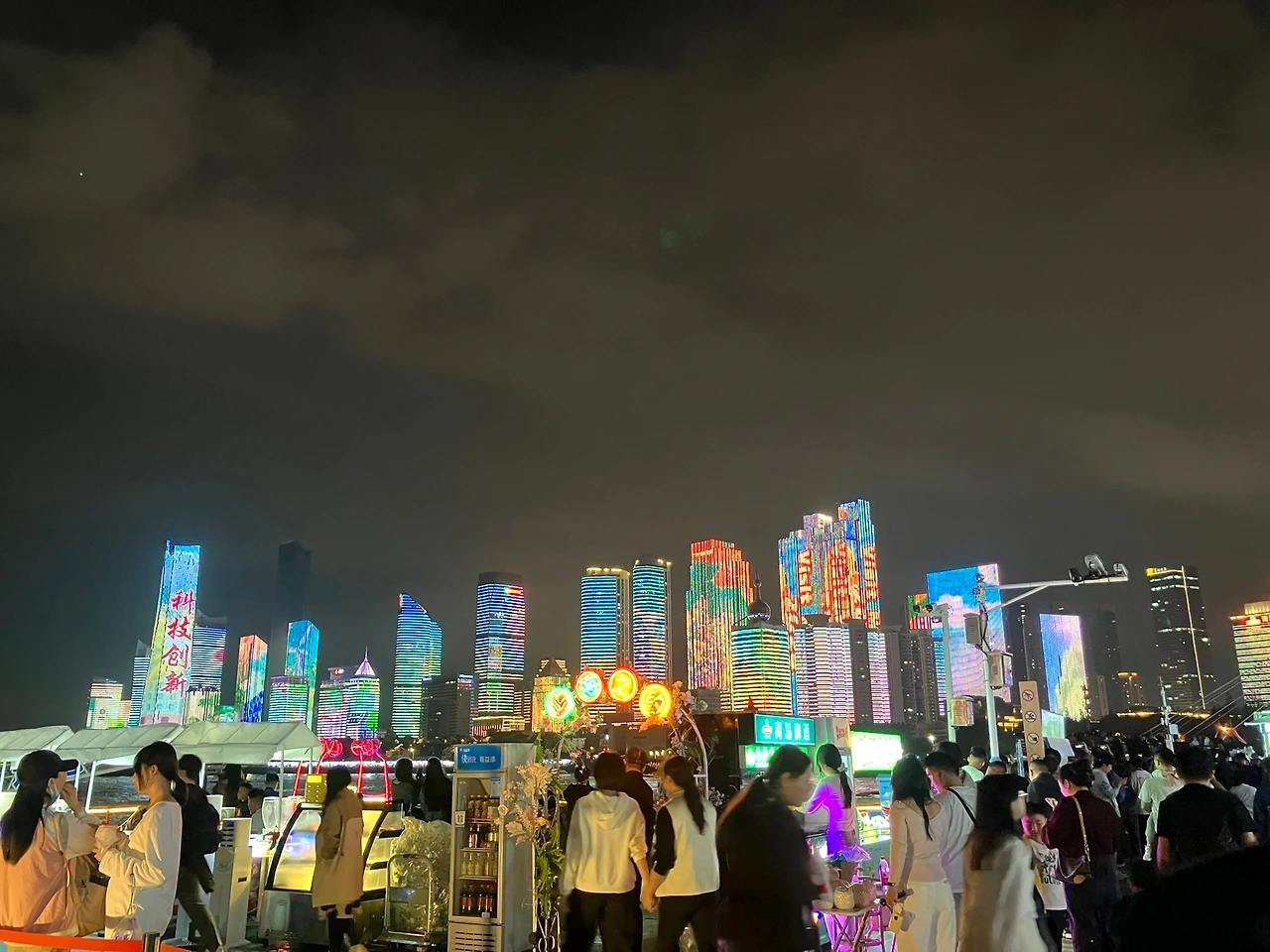 이번 청도에서도 누군가 같이 있었으면 좋겠다고 느꼈던 적이 있었는데 5.4 광장 라이트쇼를 보고 있을 때였다. 사람들을 구경하며 걷고 있는데 갑자기 시작된 라이트쇼. 맞은편 건물들이 정말 화려한 색과 역동적인 움직임으로 모두의 눈길을 사로잡았고 나 또한 홀린 듯이 해변가로 가 난간에 기댄 채 눈과 카메라에 그 장면 장면들을 담았다.