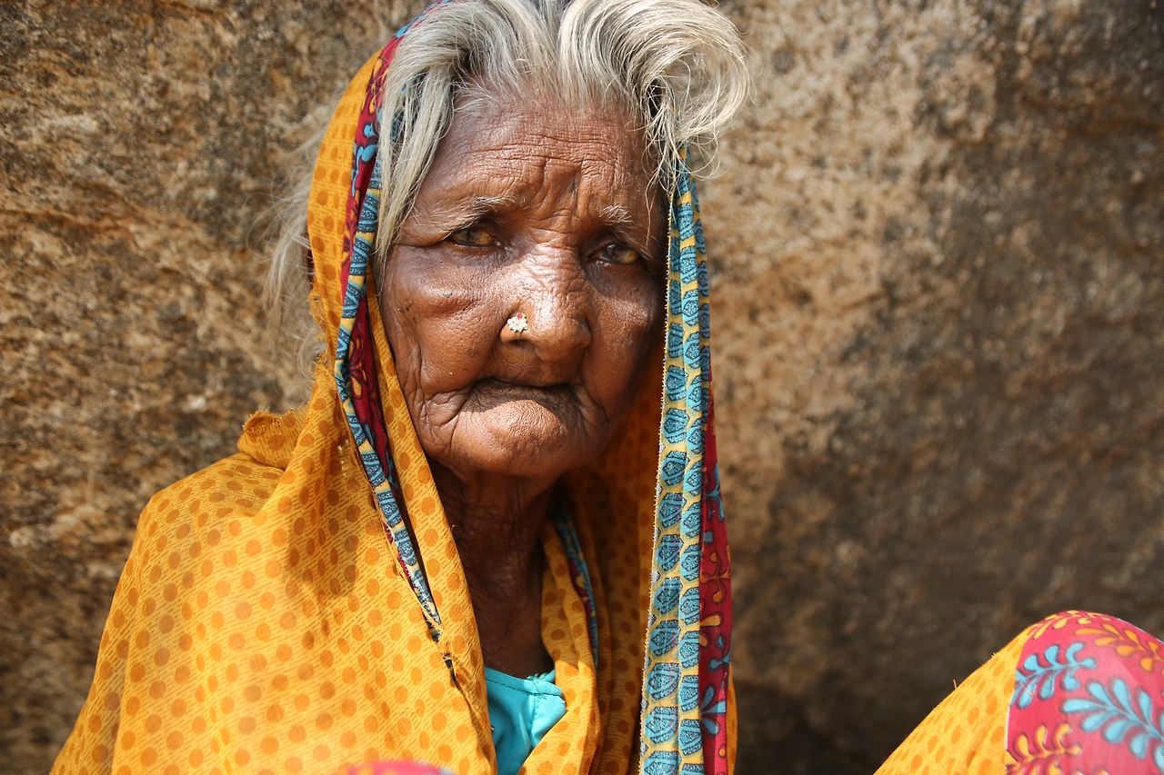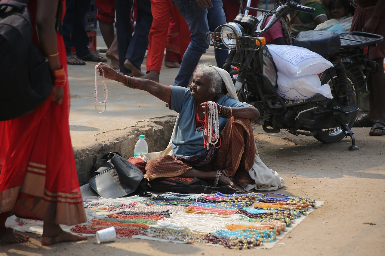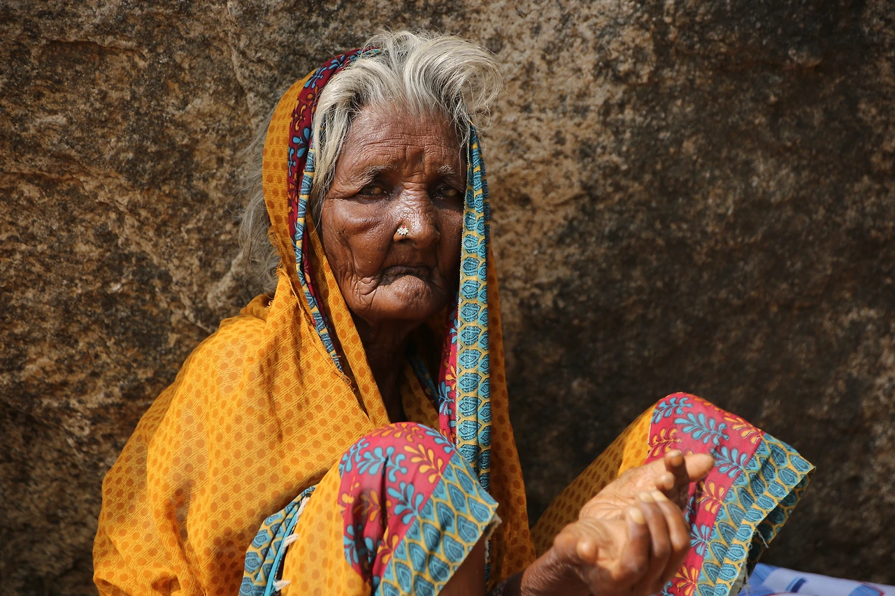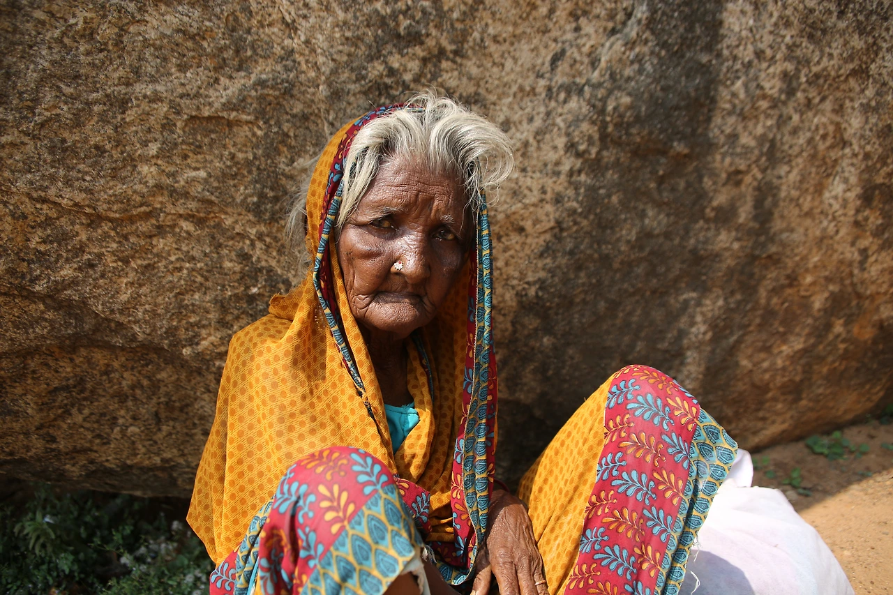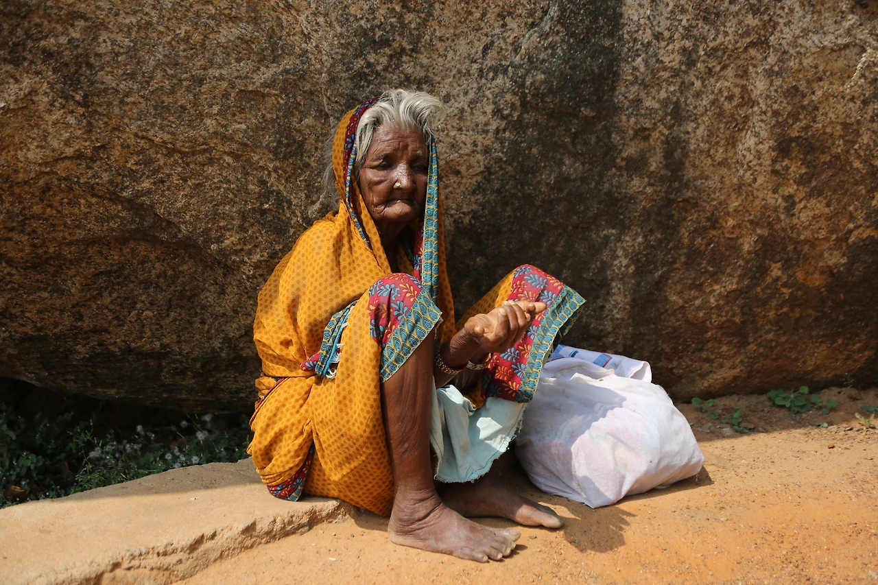 버터 볼에서 오른쪽 끝으로 저 멀리 바위 아래 노란색의 작은 점 같은 게 보였다. 줌 렌즈를 최대한으로 당겨보니 한 노파가 앉아있다. 그녀에게 다가갔다. 손가락으로 먹는 시늉을 하며 뭔가를 달라고 한다. 배낭에 탄두리 치킨과 물, 과일이 들어있었지만 릭샤에 두고 온 터라 갖고 있는 게 아무것도 없었다. 아무도 다니지 않는 바위 아래 혼자 앉아 있는 연유를 모르지만 안타까운 맘이 그지없었다. 백내장인지 석회를 풀어놓은듯 두 눈은 혼탁하고 치아가 없는지 입이 합죽했다. 땀이 줄줄 흐르도록 뜨거운 날씨였지만 몸을 잔뜩 웅크리고 있는 노인은 한기를 느끼는 것 같았다. 내가 할 수 있는 일은 적으나마 돈을 쥐어주는 것뿐이었다. 노인은 돈을 받아 들고 몇 번이고 나를 향해 합장을 하였다. 그녀에게도 꽃처럼 아름다웠던 시절이 있으리라, 그녀에게도 행복했던 추억이 있으리라, 그녀의 마지막 시간이 고통스럽지 않기를 바랐다. 뒤돌아오는 발길이 무거웠다. 눈물이 한 바퀴 핑 돌고 지나갔다.