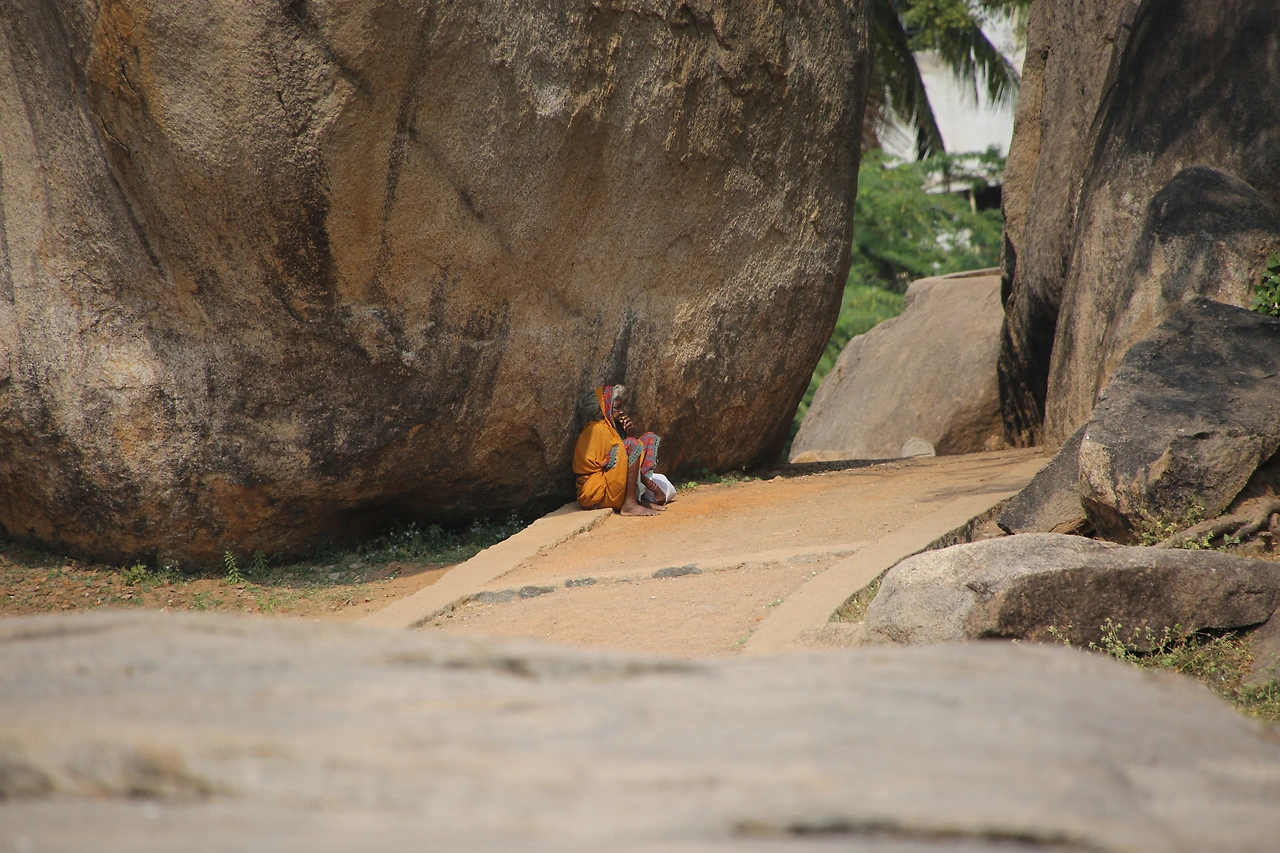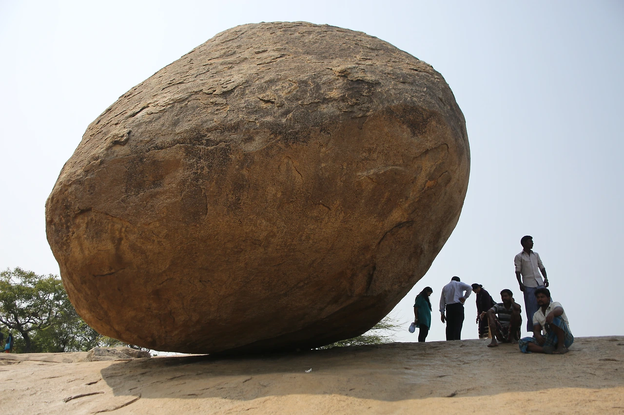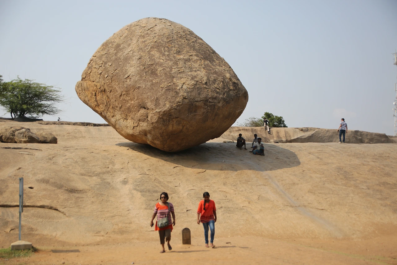 마말라뿌람에서 빼놓을 수 없는 돌이 있다면 크리슈나의 버터 볼일 것이다. 언덕 위에 불안정하게 놓인 이 바위는 금방이라도 굴러 떨어질 것 같지만 아무리 많은 사람들이 밀어도 꿈쩍하지 않는다는 것이다. 팔라바 왕조시대에는 코끼리에 연결해 끌어내리려는 시도를 해본 적도 있다고 한다. 혹시 바위가 뿌리를 내리고 있는 게 아닐까? 바위의 한 쪽 단면이 마치 버터를 나이프로 자른 듯하다고 해서 버터 볼이라는 이름이 붙여졌다.