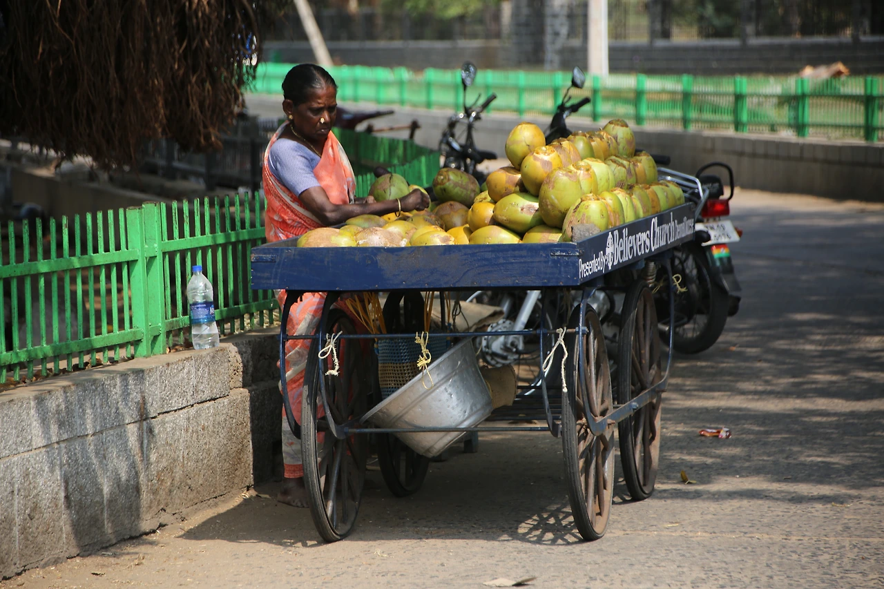모든 종교가 그렇지만 힌두교에 대한 지식도 없거니와 조각들을 자세히 들여다보아도 그 내용이 딱히 맘에 들지 않는다. 감동은 억지로 불러일으킬 수 없다. 내가 좋아하는 것, 내가 보고 싶은 것을 스스로 찾아 나서기로 했다. 그러자면 걸어야 한다. 일단 뭔가를 먹어야겠는데 딱히 음식점이라고 할만한 곳이 없다. 망고주스를 하나 사서 셔터가 내려진 어느 상점 앞 그늘에 주저앉았다. 물티슈로 손을 닦으니 새카맣다. 무려 세 장을 쓰고 나니 그나마 나아졌다. 탄두리 치킨과 청포도로 요기를 하니 금세 힘이 솟는다. 주변을 어슬렁거리던 개에게 남은 살코기를 던져주고 쓰레기를 모아 비닐에 챙겨 들고 일어섰다. 아무 데나 툭 던져도 이상할 것 없이 지천이 쓰레기가 넘쳐나는 인도지만 습관이라는 게 무서운지라 어딘가에 있을 쓰레기통을 찾기로 했다.