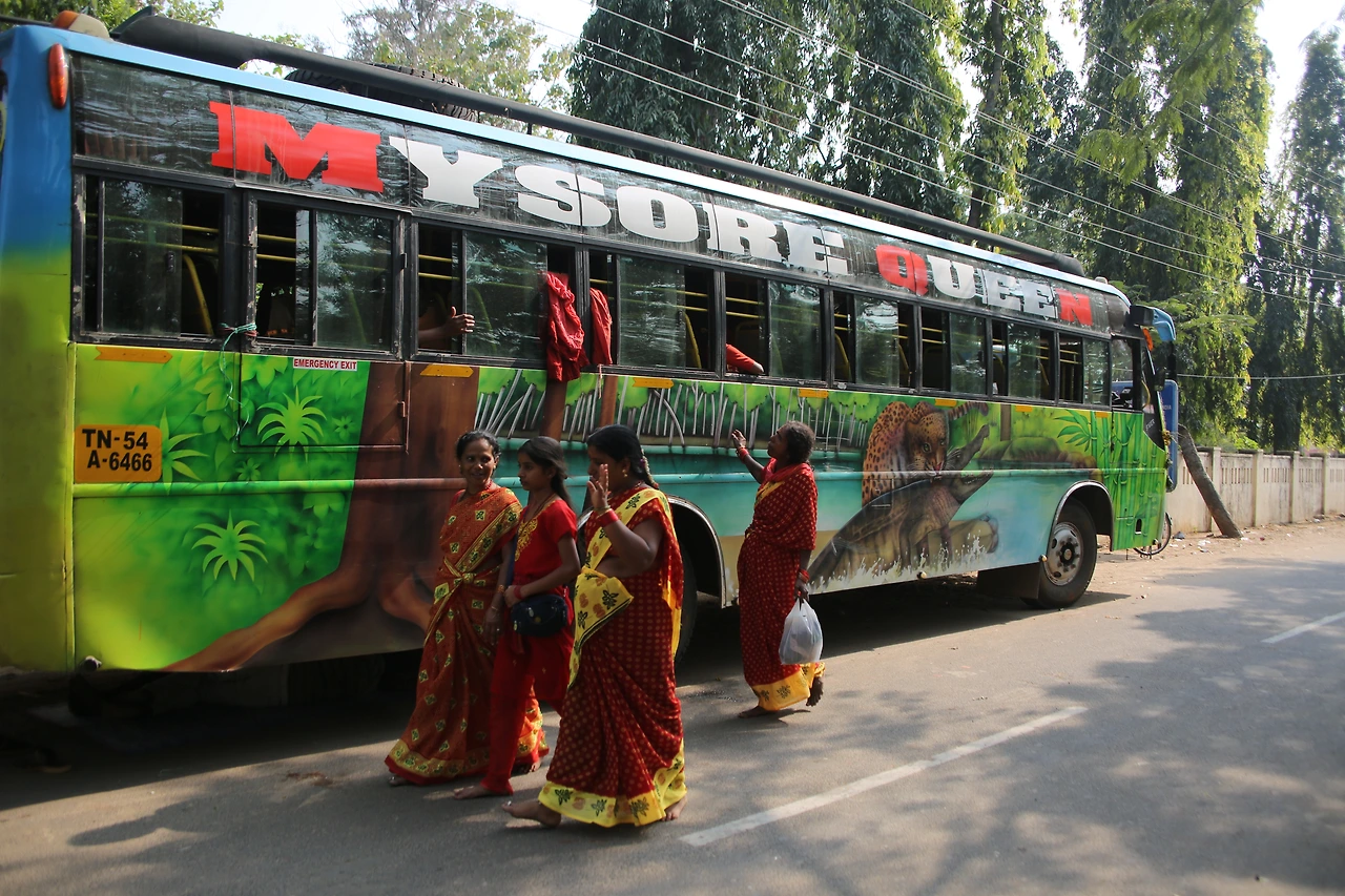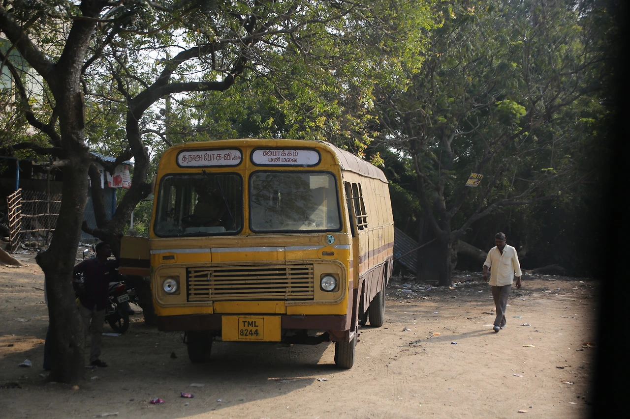 첸나이에서 해변을 따라 남쪽으로 60km 떨어진 마말라뿌람까지는 2시간이 걸릴 예정이다. 카키색 유니폼을 입은 남자가 버스비를 받으러 왔다. 50루피(1,000원).