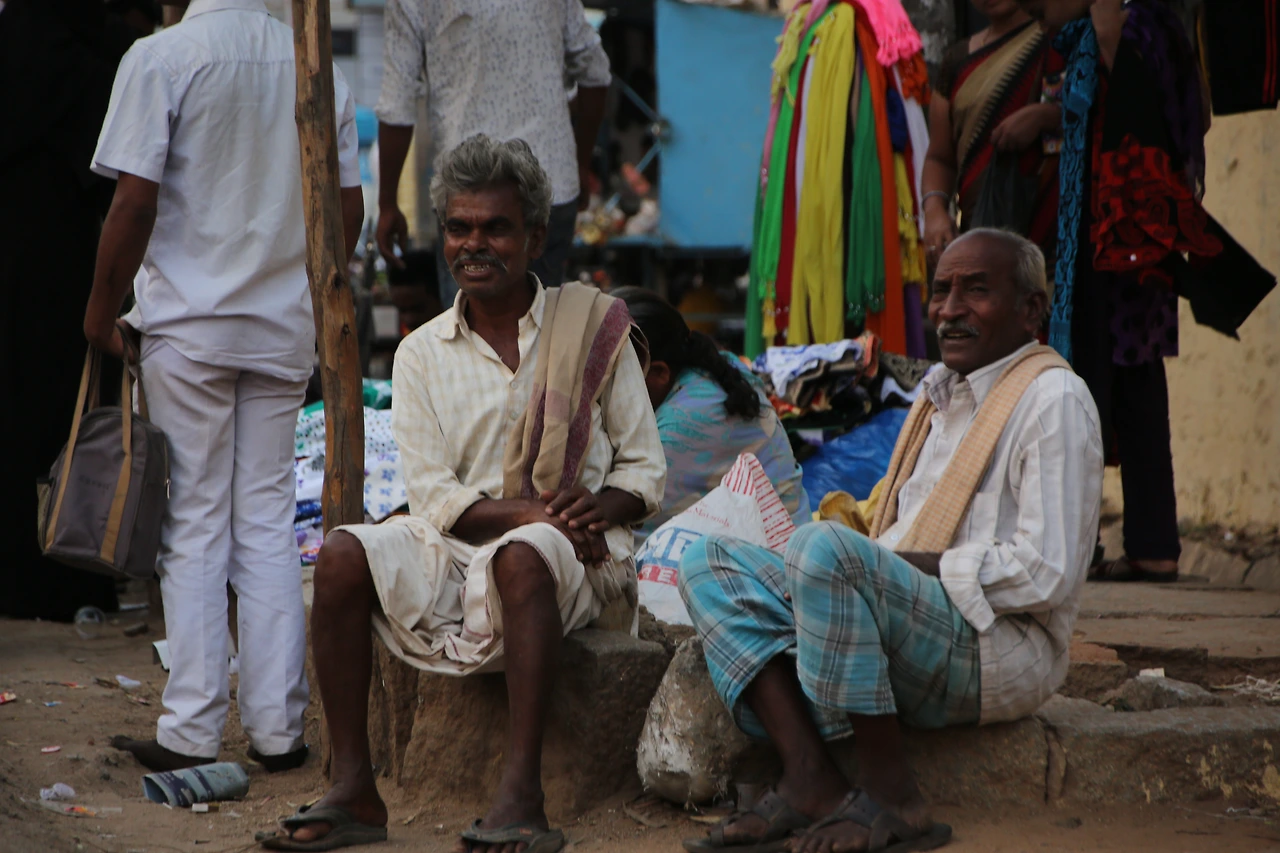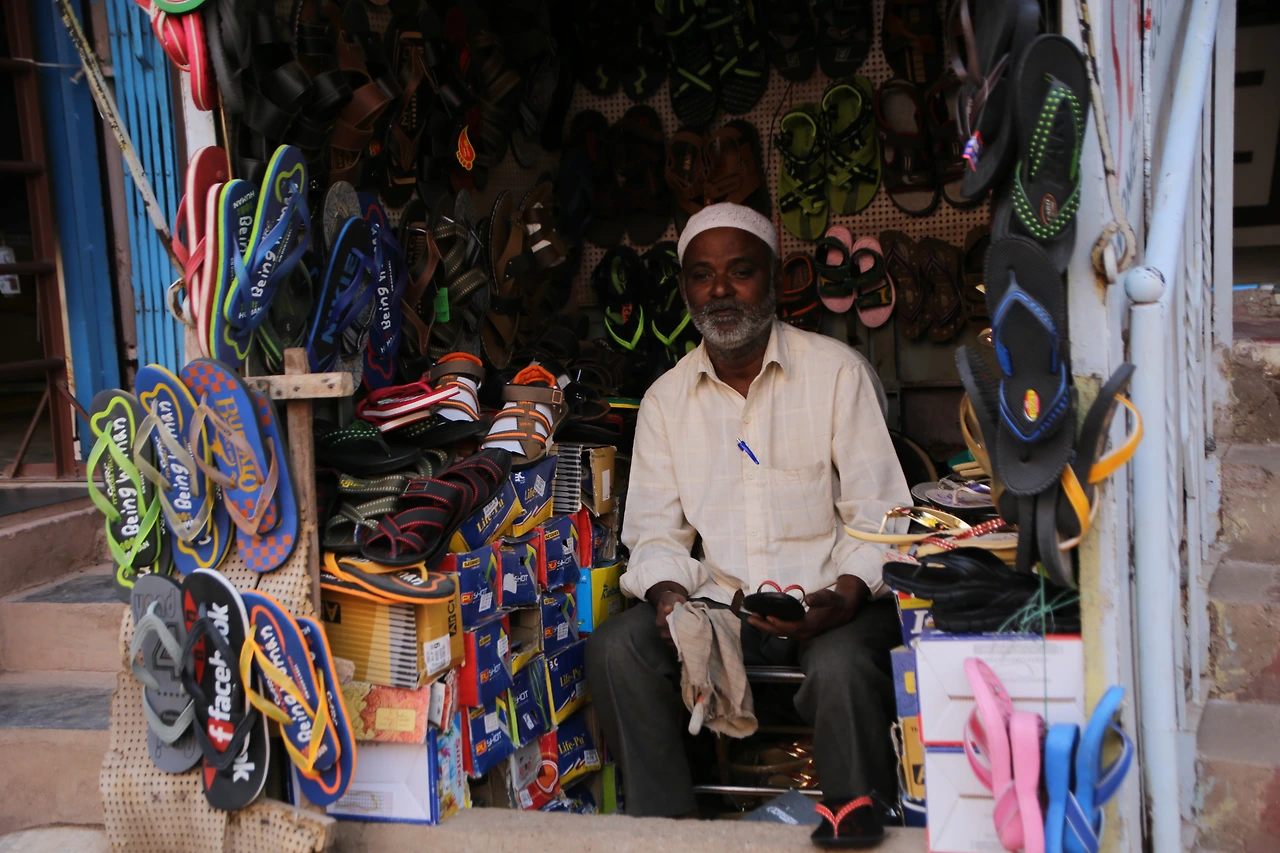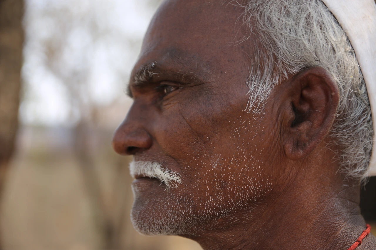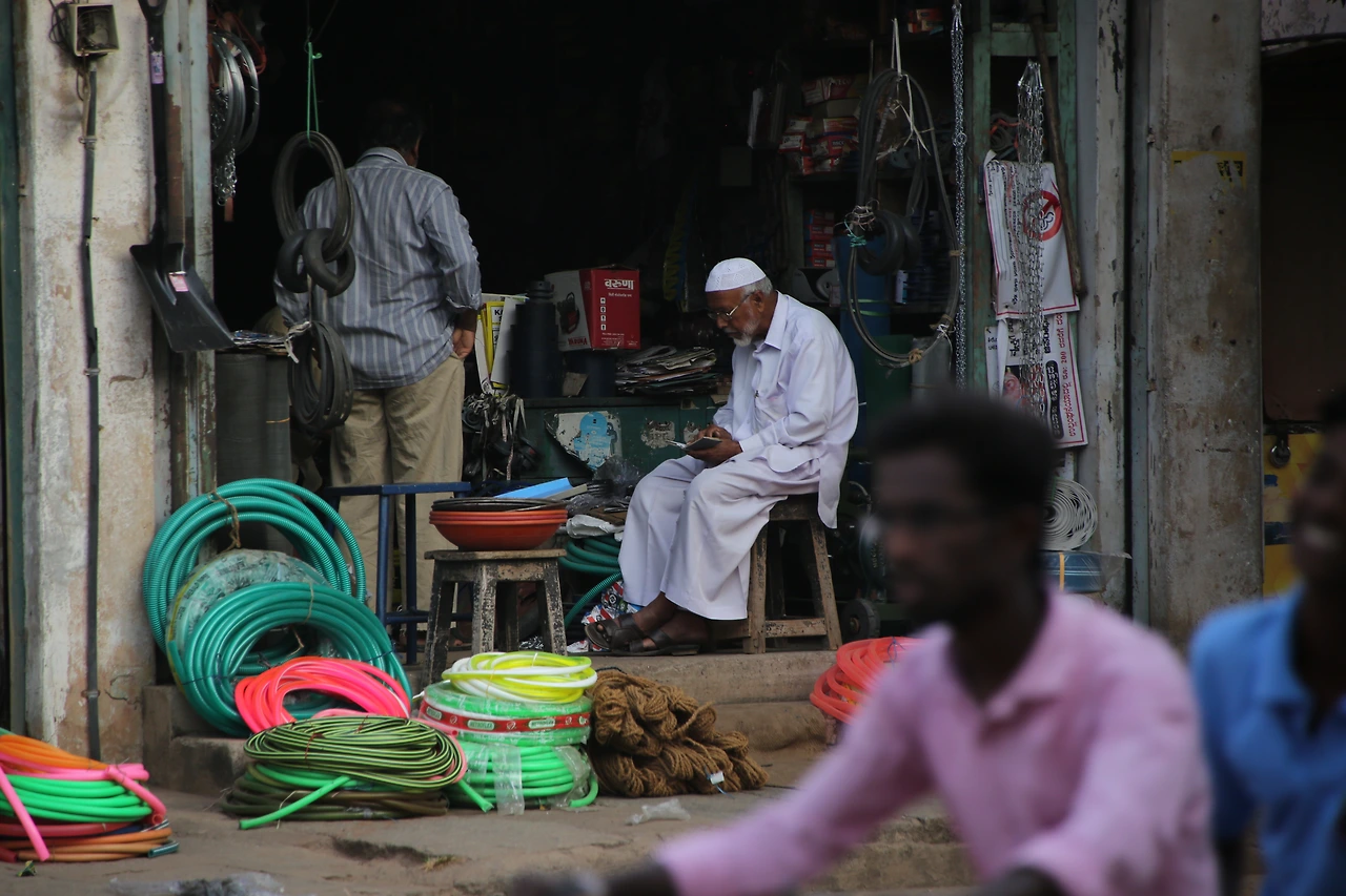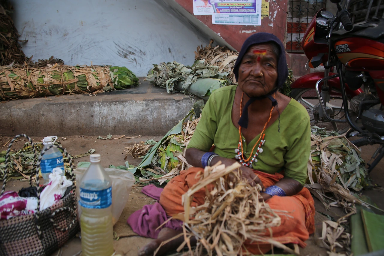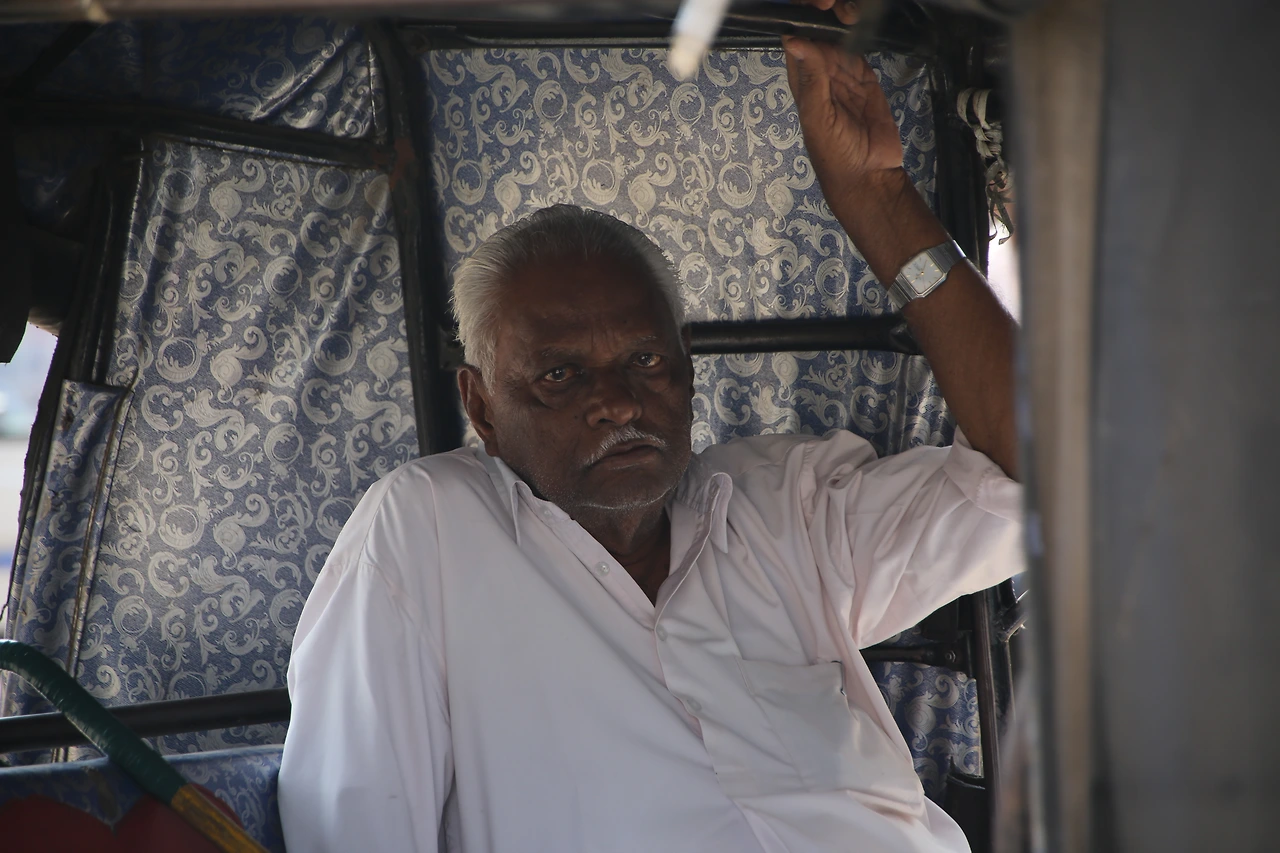 대부분의 인도 남자들은 카라가 달린 셔츠를 입는데 카라가 없는 티셔츠를 입은 것부터 남다른 할아버지의 근육이 제법 탄탄해 보입니다.