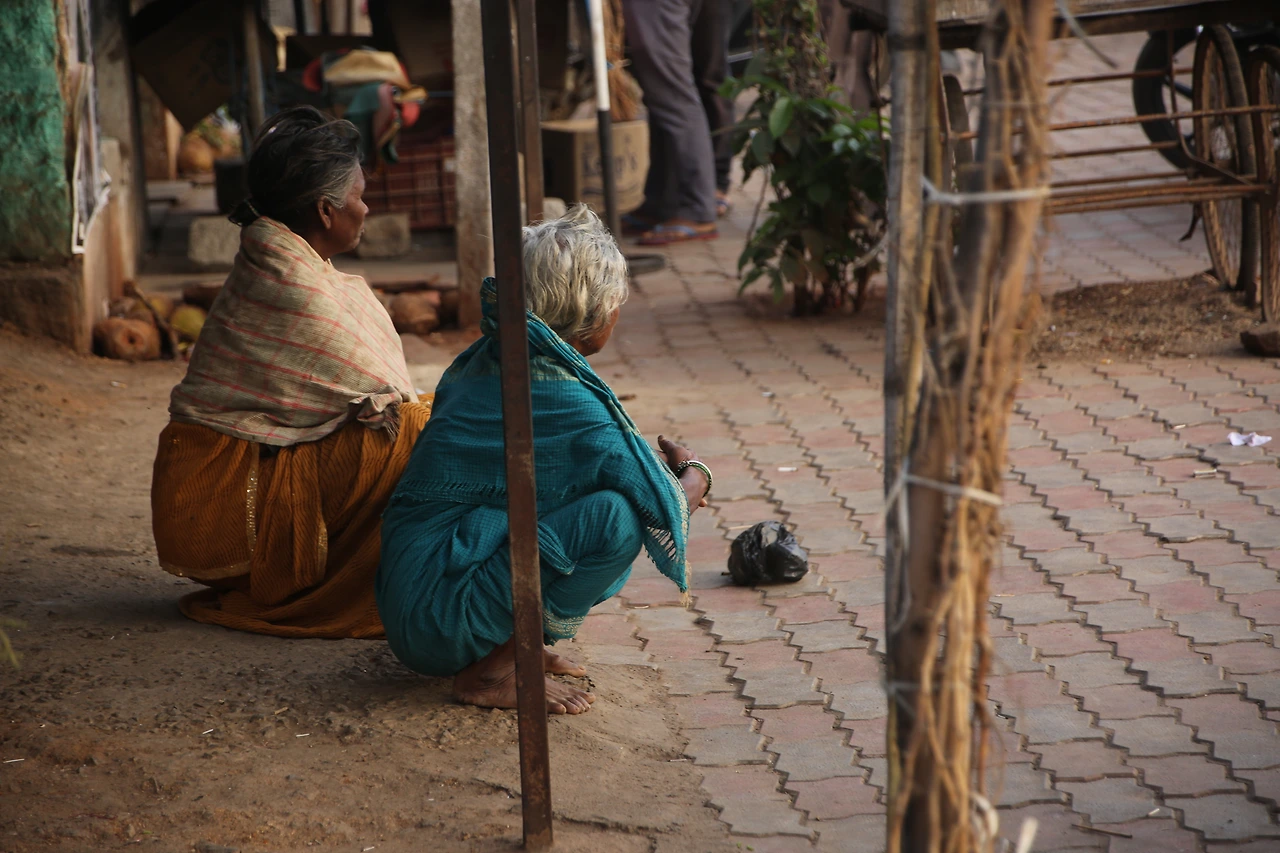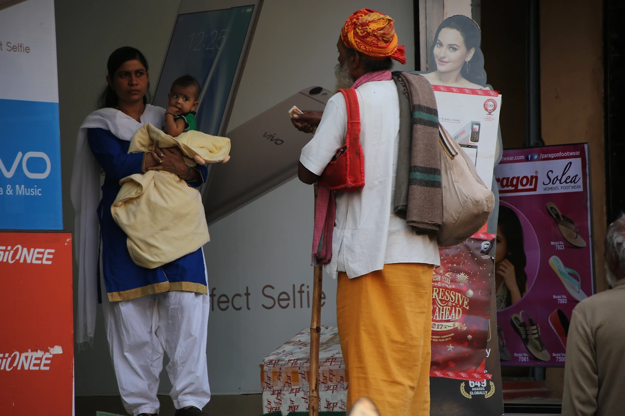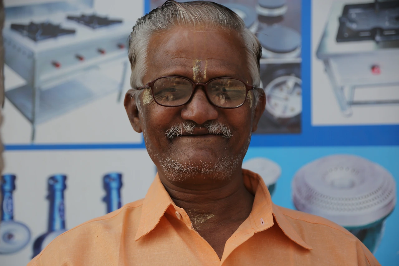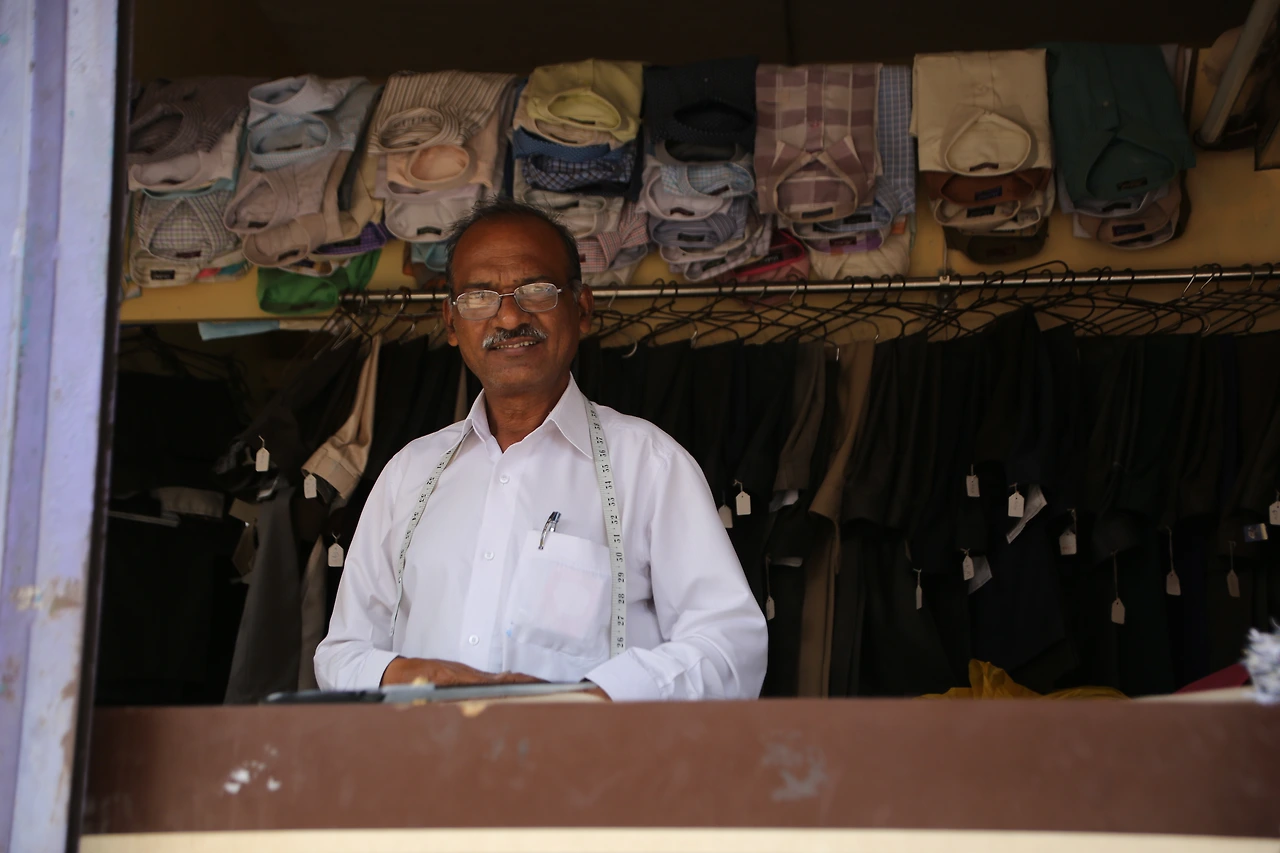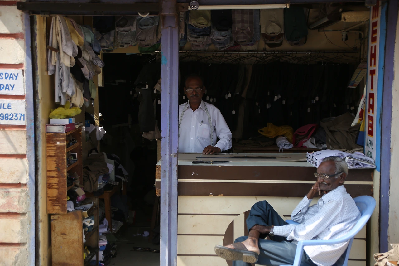 대부분의 인도 남자들은 카라가 달린 셔츠를 입는데 카라가 없는 티셔츠를 입은 것부터 남다른 할아버지의 근육이 제법 탄탄해 보입니다.