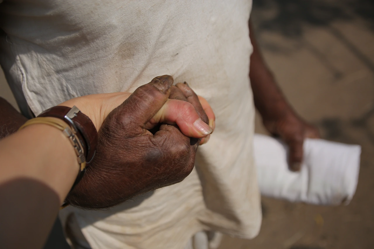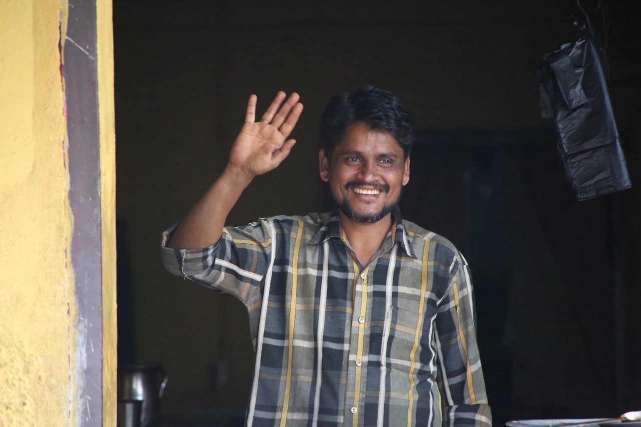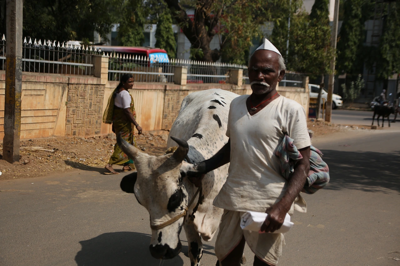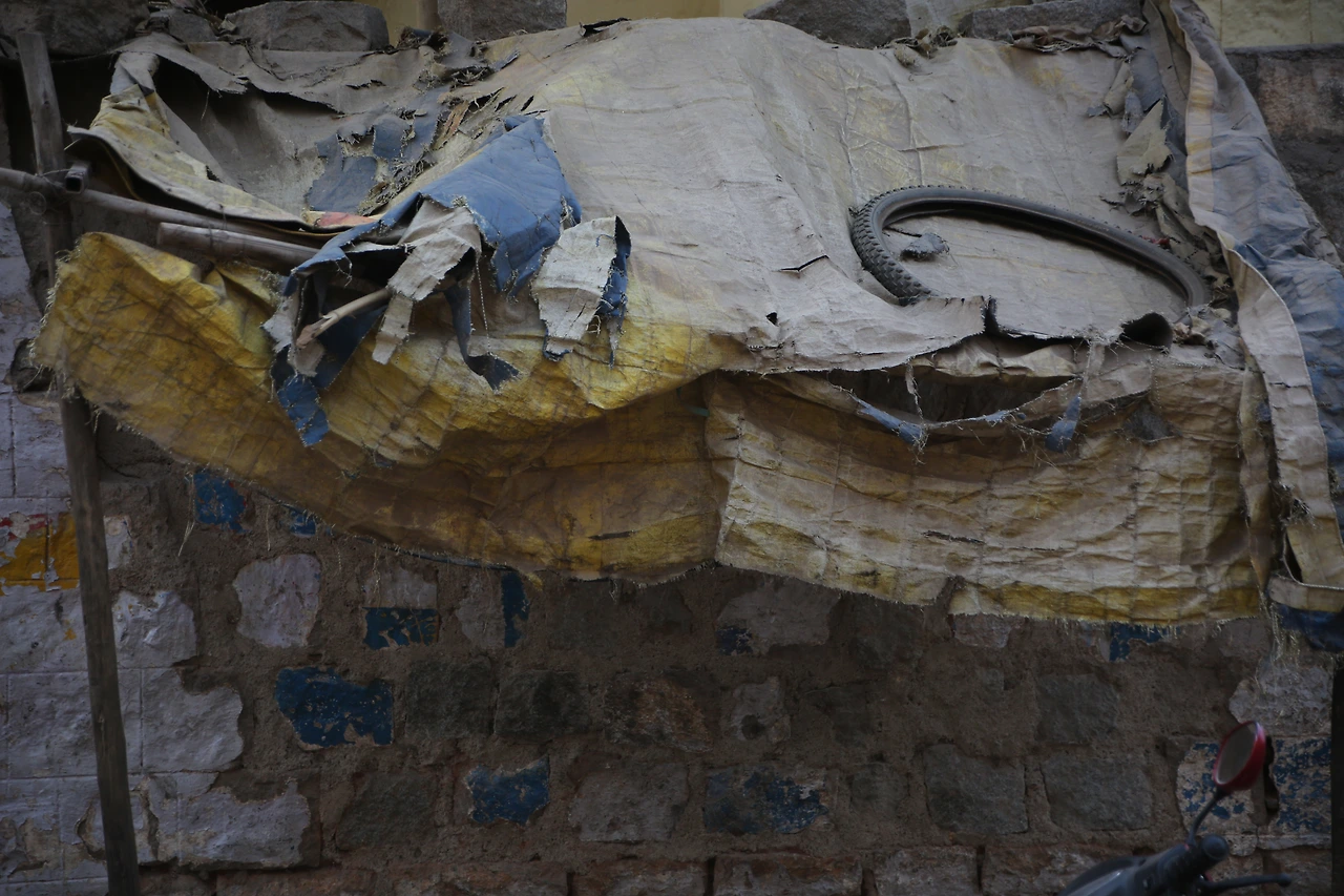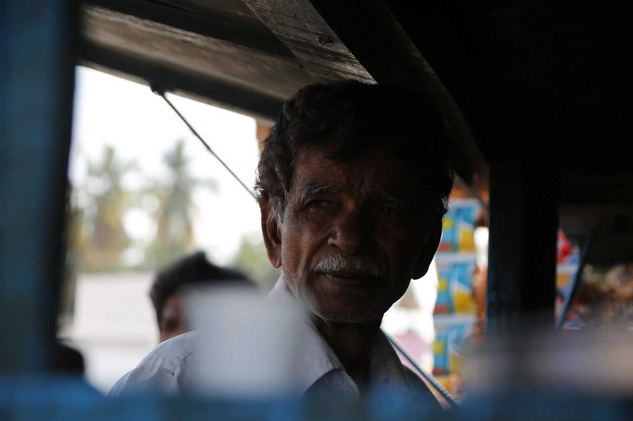 대부분의 인도 남자들은 카라가 달린 셔츠를 입는데 카라가 없는 티셔츠를 입은 것부터 남다른 할아버지의 근육이 제법 탄탄해 보입니다.