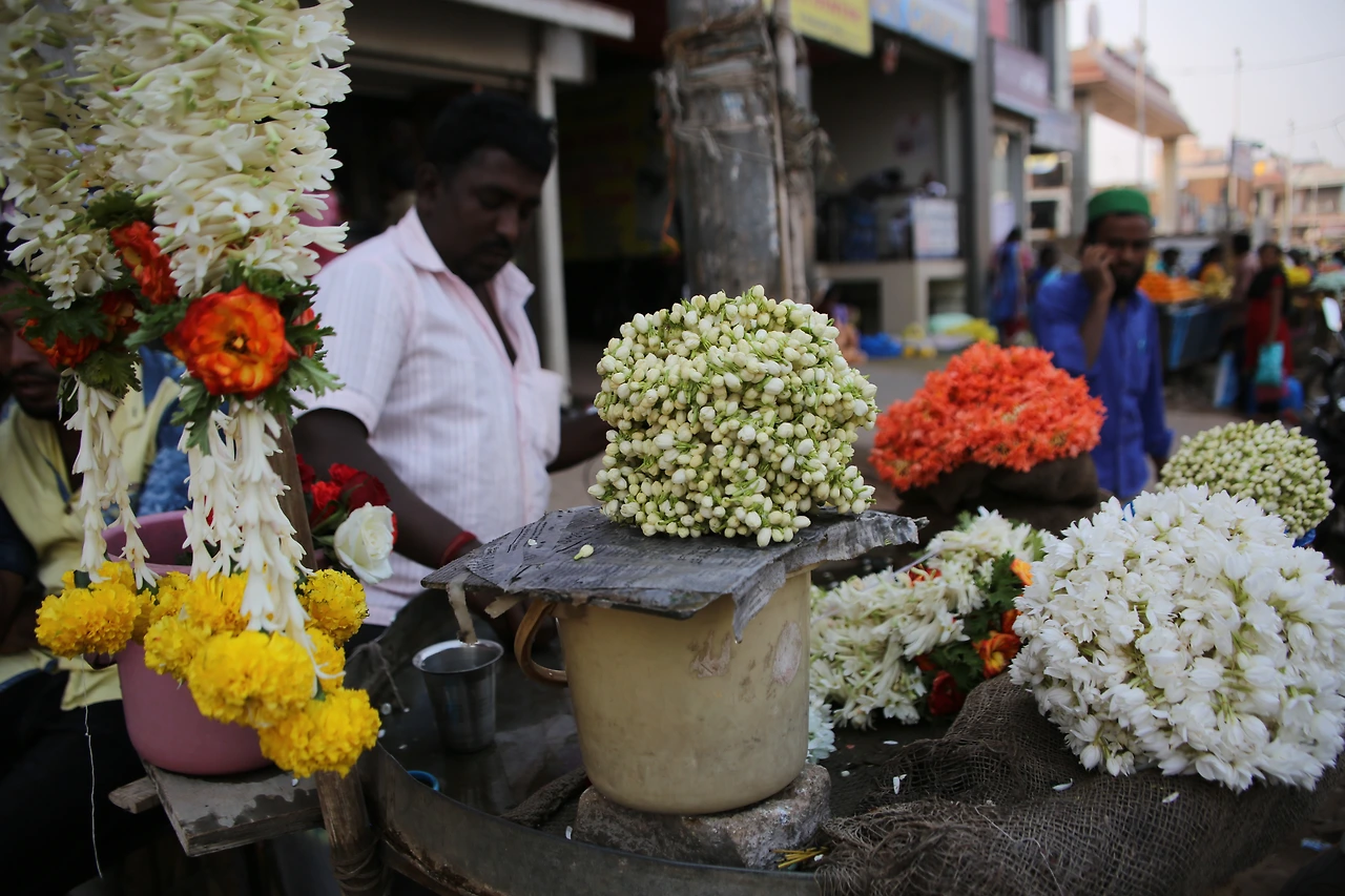 인도 사람들은 신에게 꽃 목걸이를 바치는 걸 복으로 생각합니다.