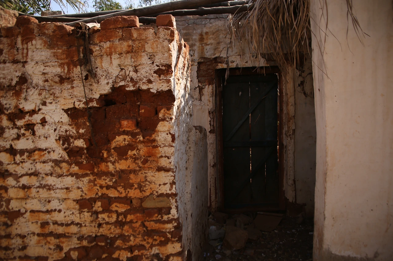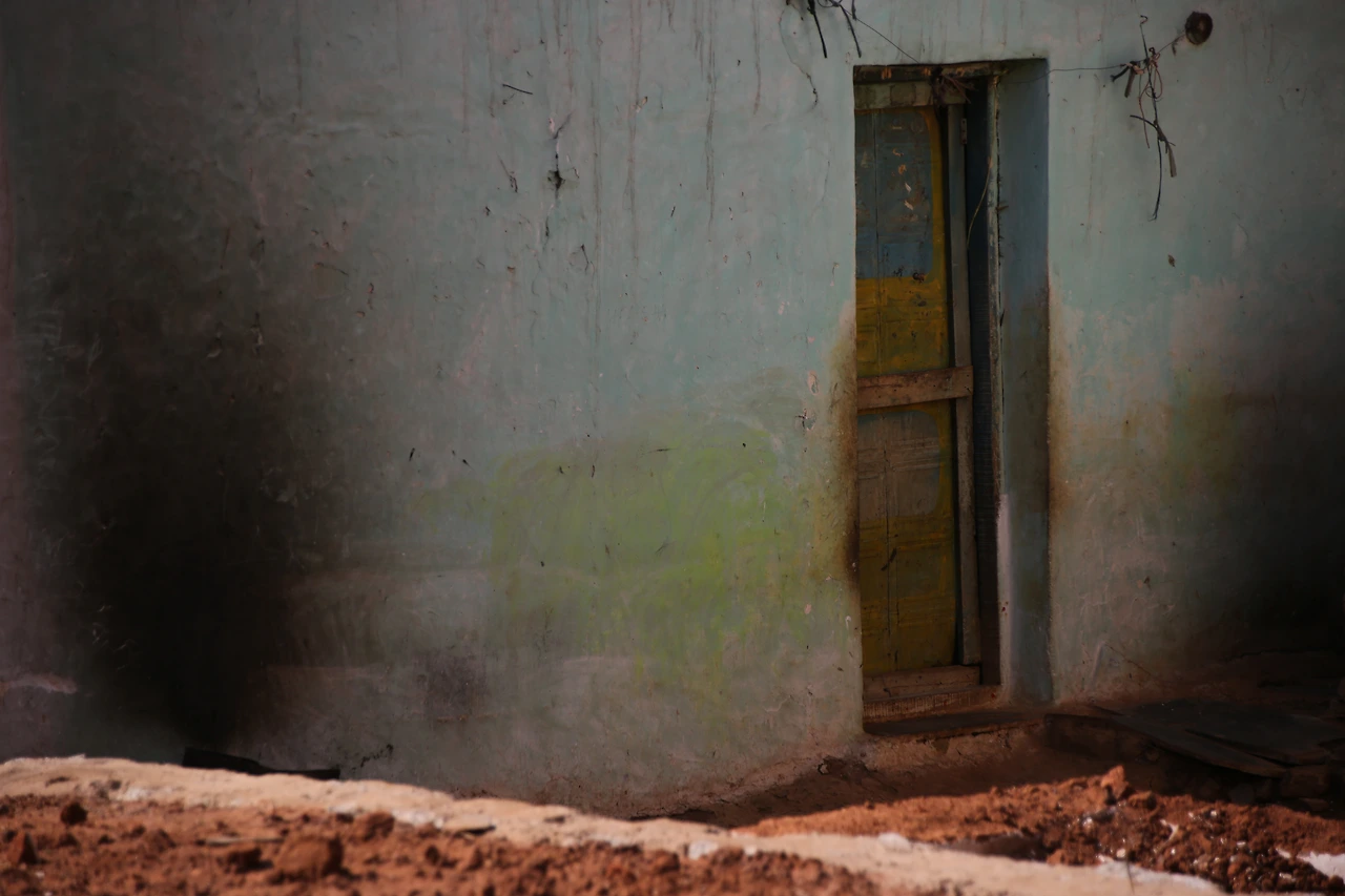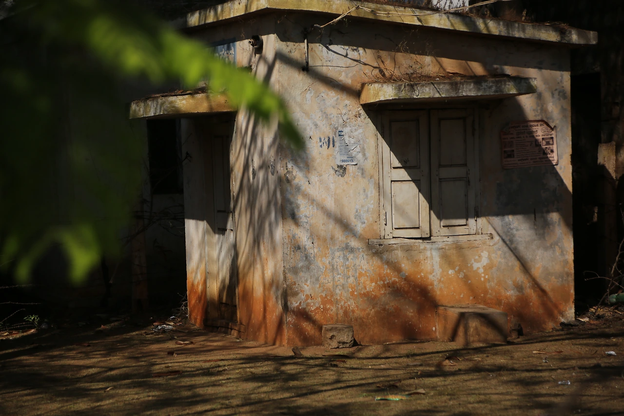 폐가의 고풍스러운 문이 눈길을 끕니다.