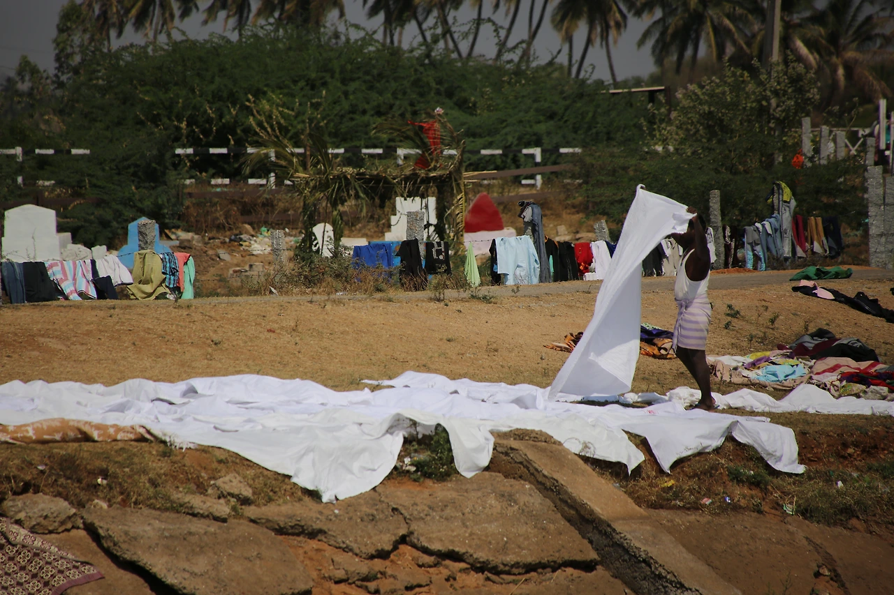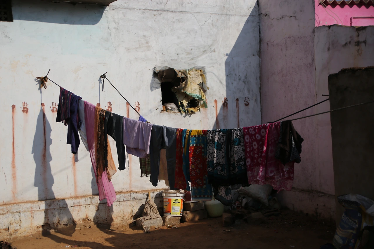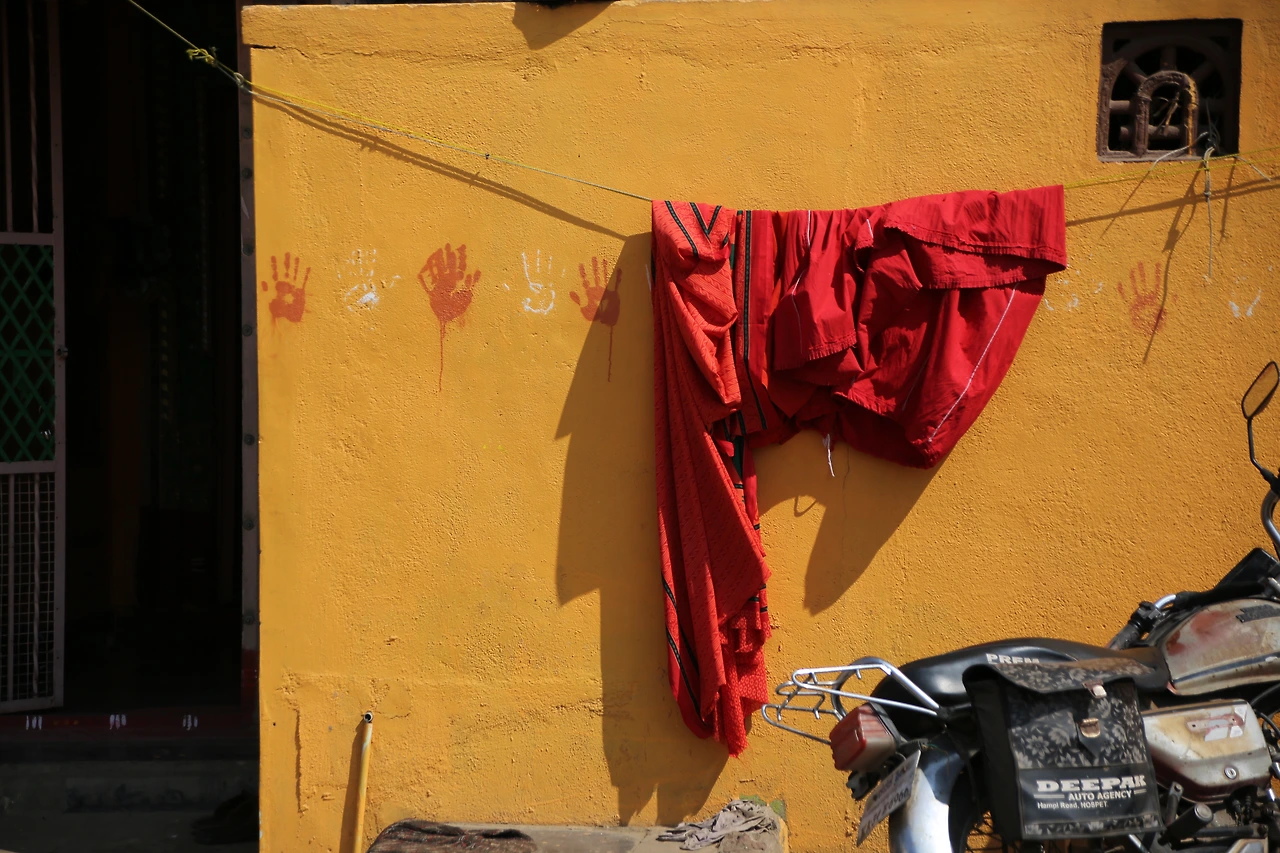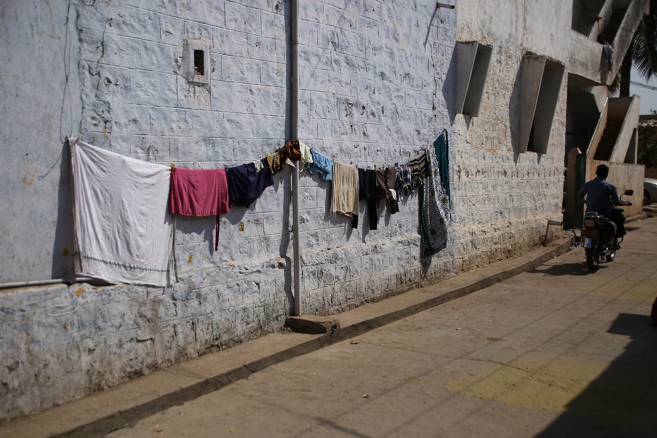 인도는 빨래 건조대라는 게 딱히 없는 듯 담장 위나 담벼락 등 어디나 척척 걸쳐놓으면 끝, 반나절이면 마르니까요. 어느 곳 하나 같은 모습이 없지요. 무심하게 툭 걸쳐놓은 옷들이 참으로 정겨워 자꾸만 눈길이 갑니다.