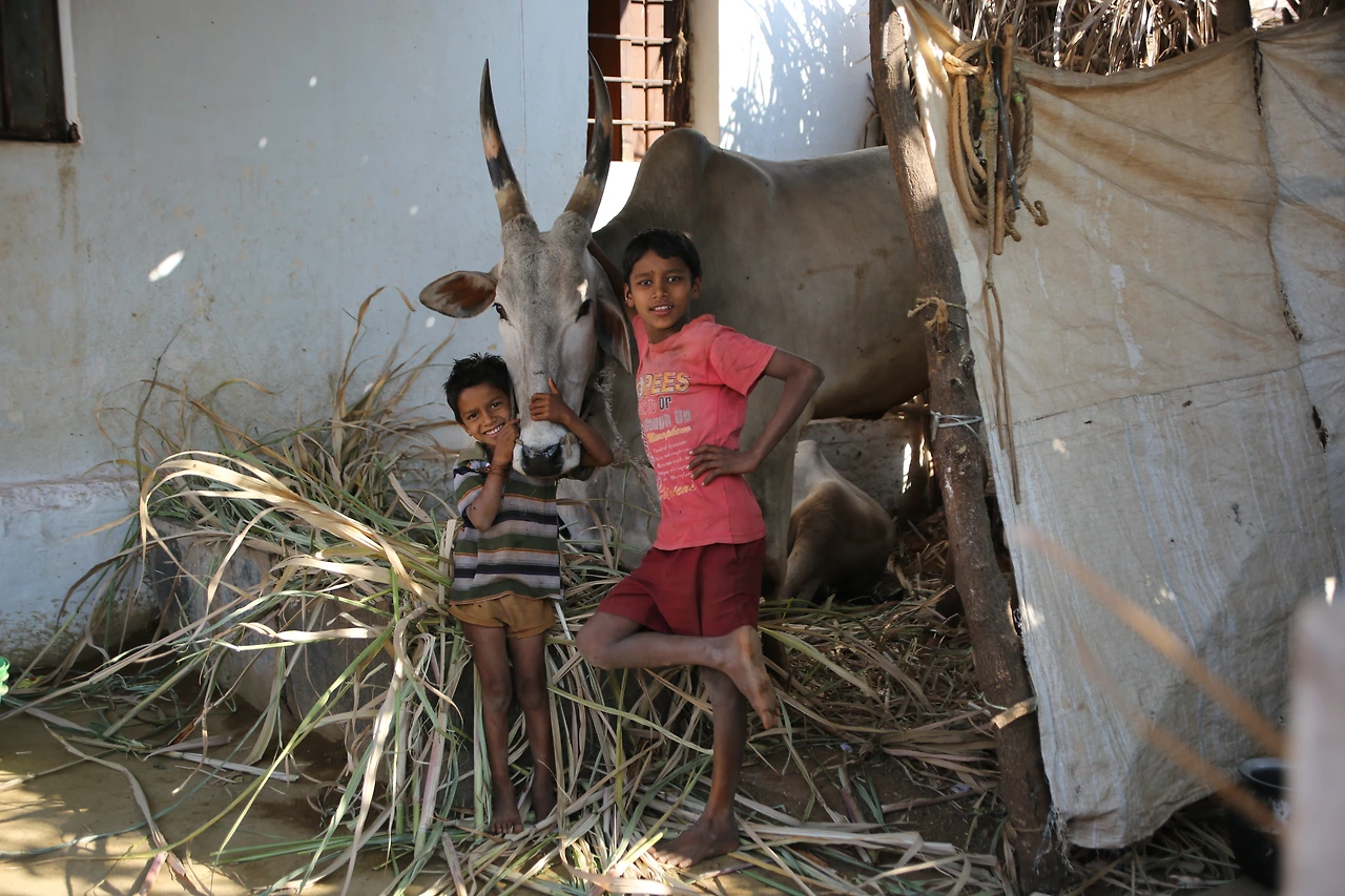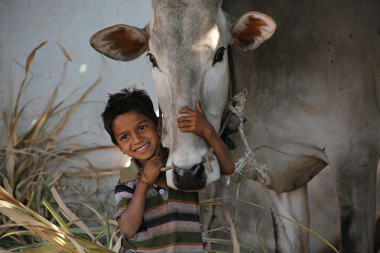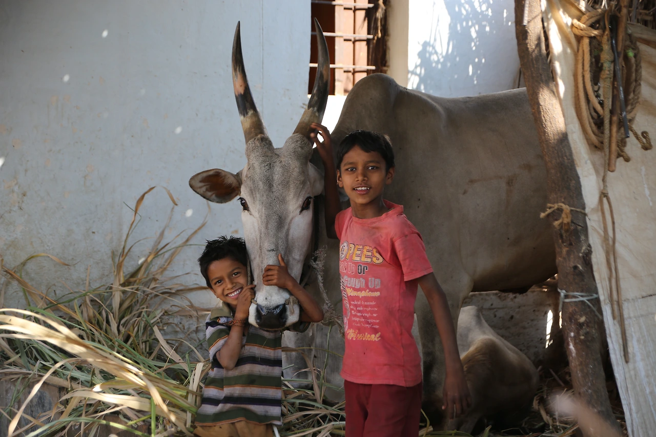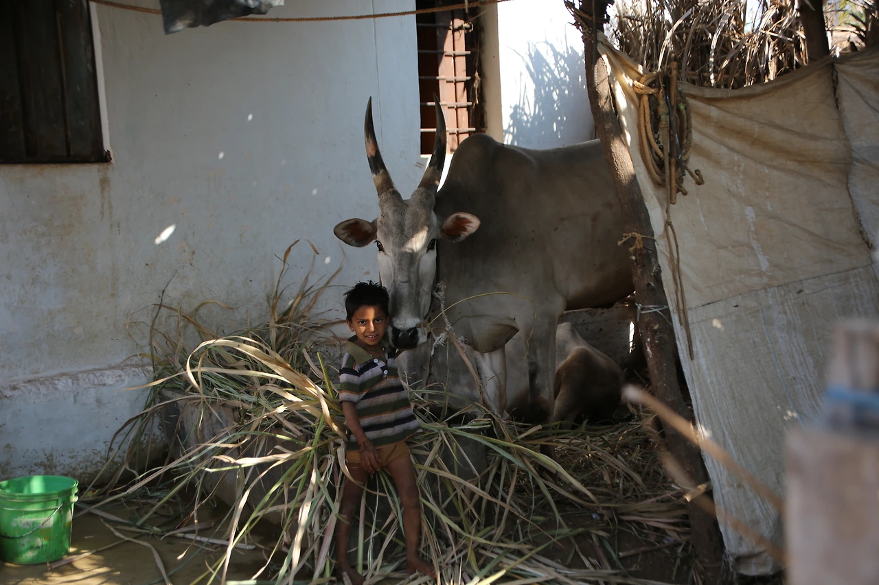한 아이가 다짜고짜 집으로 달려 들어가더니 키우고 있는 물소를 끌어안으며 포즈를 취했습니다.