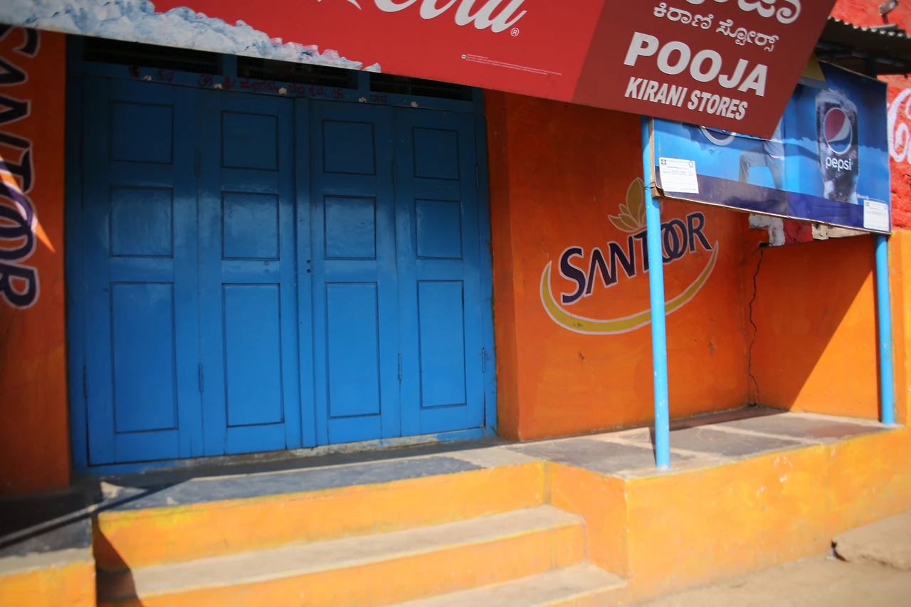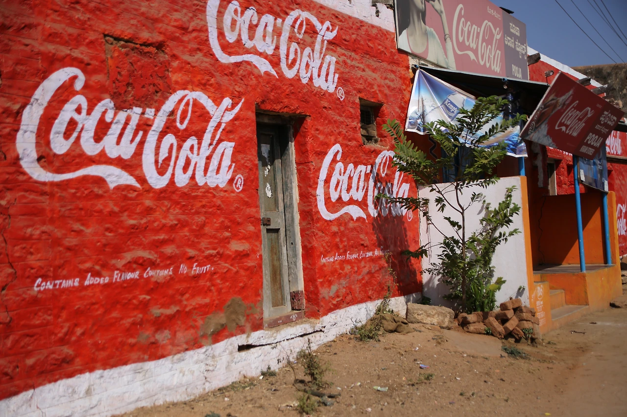 그 동네 길가에는 코카콜라와 오렌지 음료 로고로 칠해진 상점들이 꽤 여러 개 있었습니다.