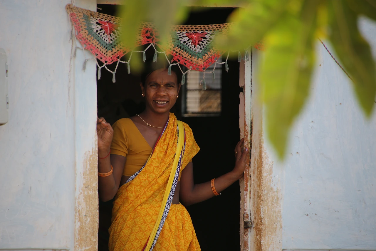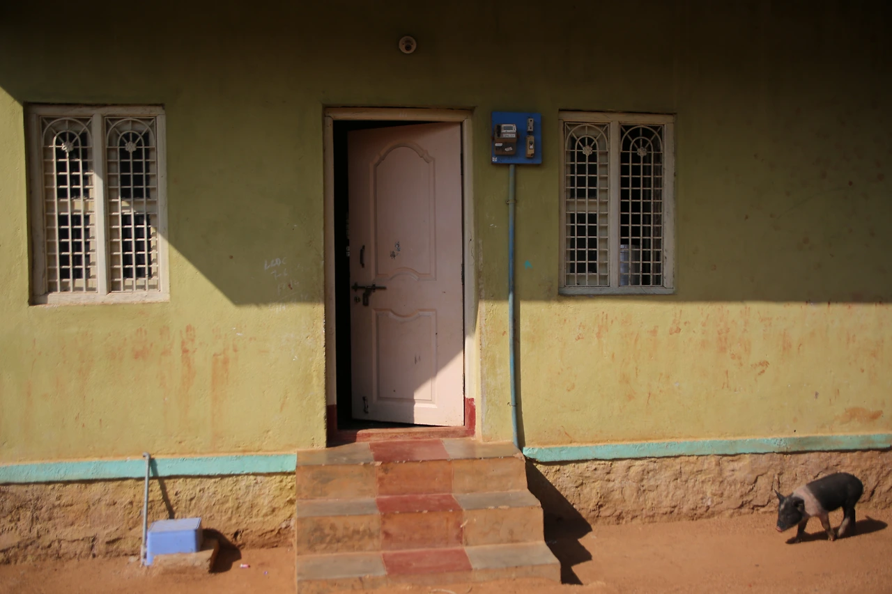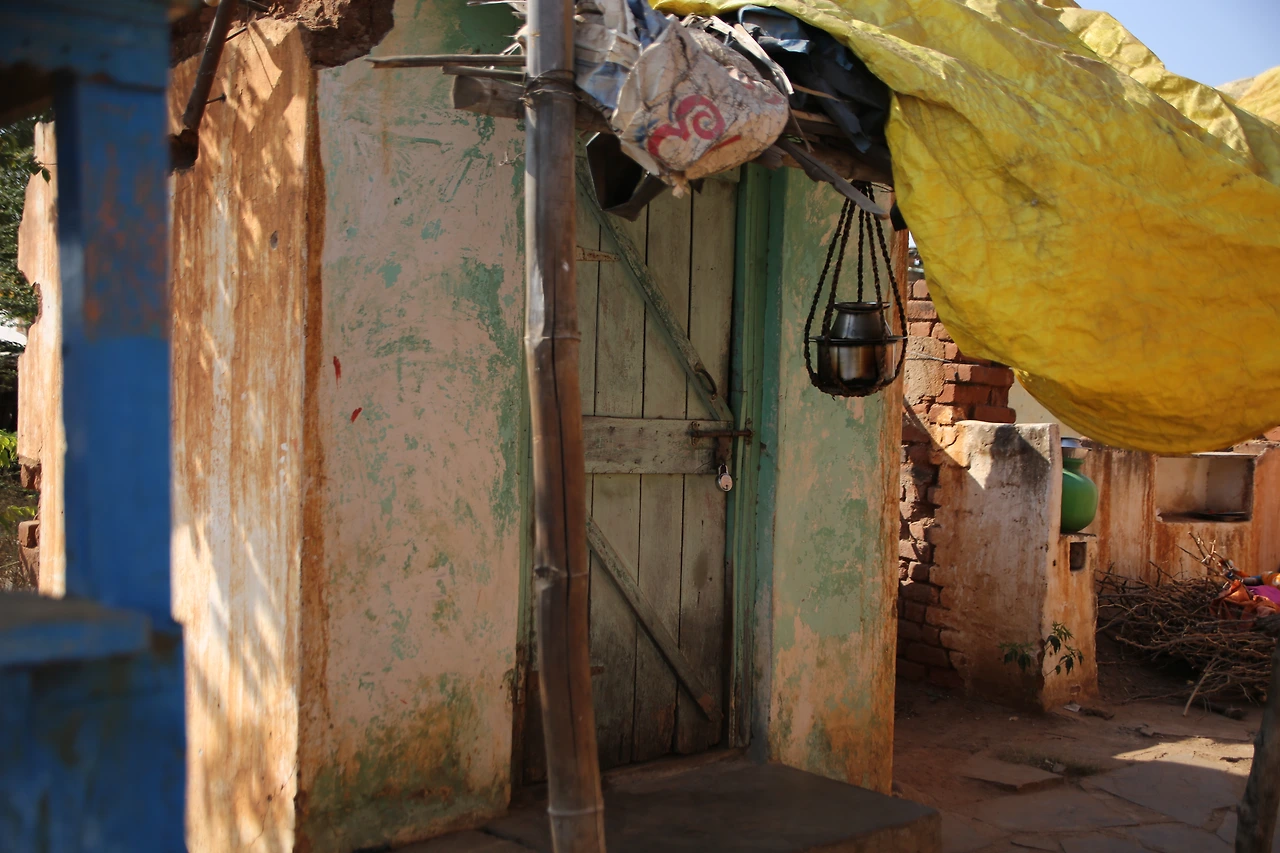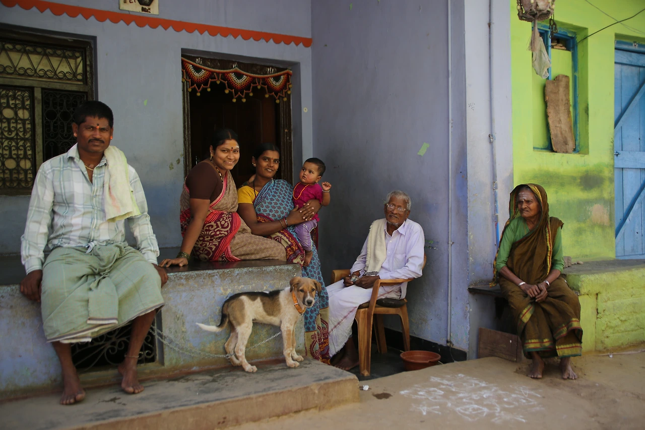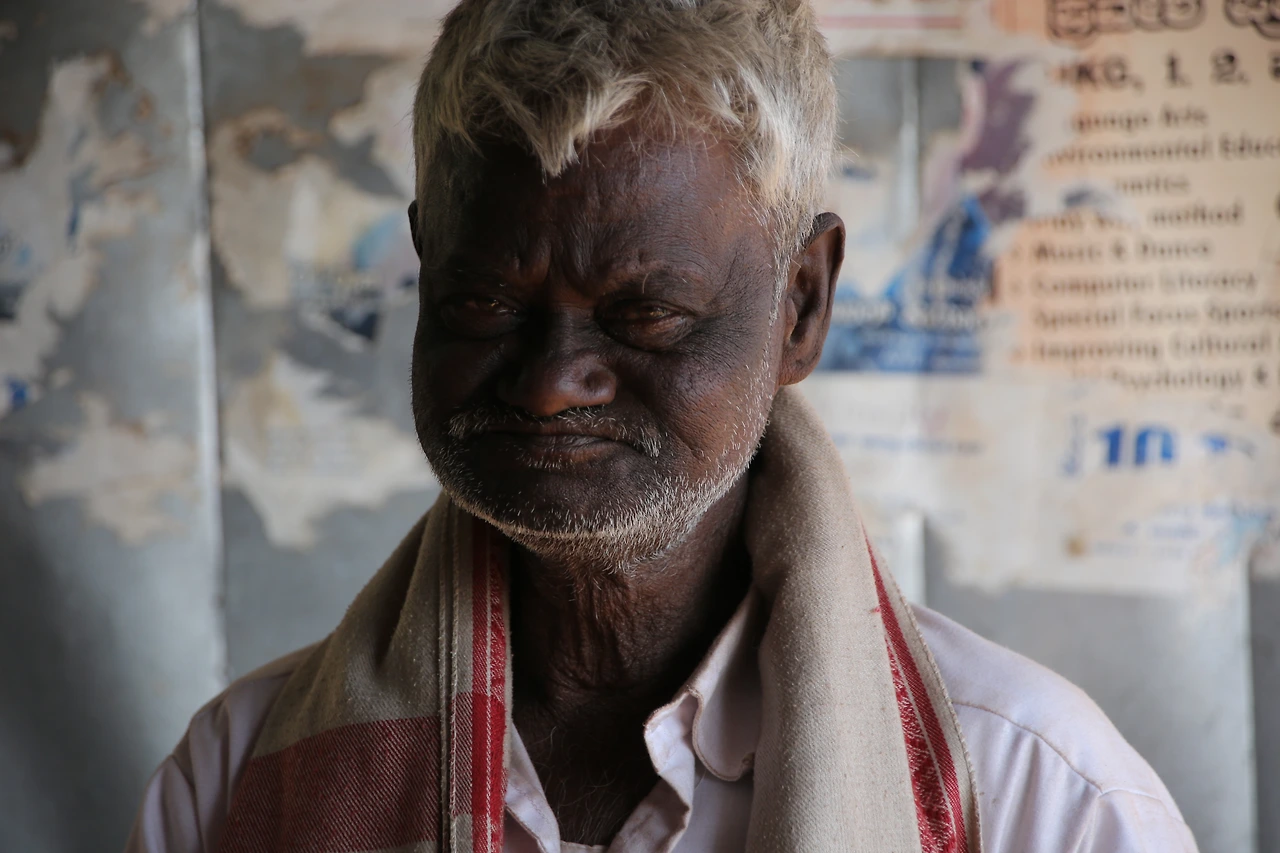 갈대 짚 이엉이 만들어내는 그림자 사이로 노란 사리를 입은 백발의 할머니가 손가락으로 식사를 하십니다. 그 뒤로 놀랍게도 남자 셔츠를 입은 여인이 허공을 응시하고 있어요. 도회지에서 아가씨들이 청바지를 입은 모습도 보기 드문 곳이 인도입니다. 하물며 그 작은 마을의 아낙이 남자 셔츠를 입고 있는 게 좀 의아하네요. 그릇 뚜껑을 든 남자가 공연히 웃어요. 대나무 기둥 뒤로 흘끗 보이는 남자 모습이 옛날 그림 속 이야기처럼 뭔가 얘깃거리가 될 것만 같습니다. 두 여인의 시선이 각각 다른 곳에 있는 반면 두 남자의 시선은 카메라를 향합니다. 마치 스토리가 있는 그림 같아요. 구도며 거리, 빛의 감도, 뭐 그런 것들을 모두 떠나서 말이죠.