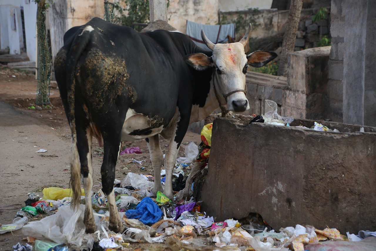 쓰레기를 뒤지다 들켜버린 소는 체면을 구긴 듯 나를 바라봅니다.