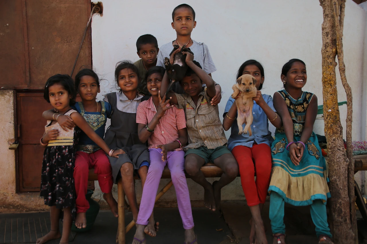 그 모습을 본 아이들은 각자의 집에서 강아지들을 들고 나옵니다.