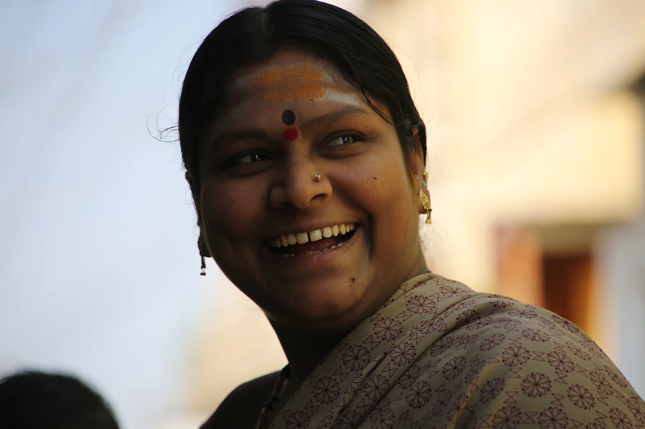 미간에 찍은 오렌지색 빈디가 얼굴에 화사함을 더해주네요.