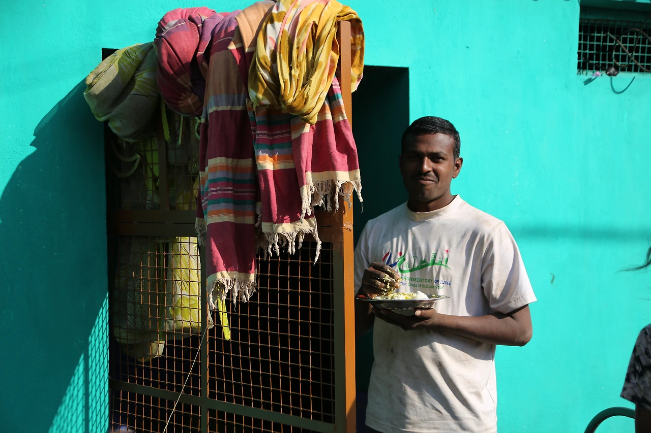대부분 길에 서서 바나나 잎 식판? 에 음식을 담아 손가락으로 집어먹는 형태가 많지요.