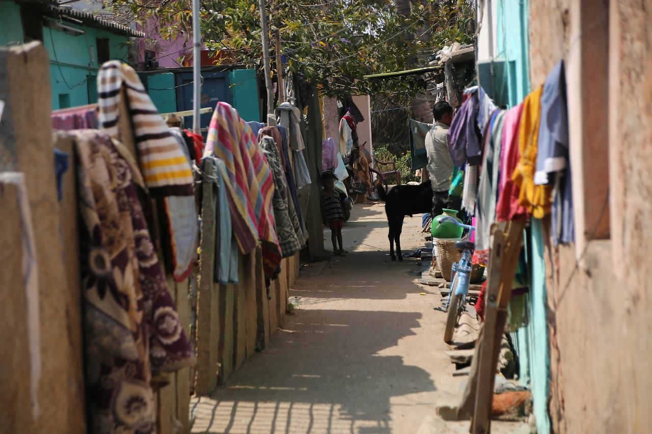 딱히 문이라고도 할 수 없이 헝겊 조각 한 장으로 가려놓은 손바닥만 한 방이나 대나무로 얼기설기 만든 담장 너머로 사람들이 고개를 빼꼼히 내밀고 손을 흔들거나 웃어줍니다.