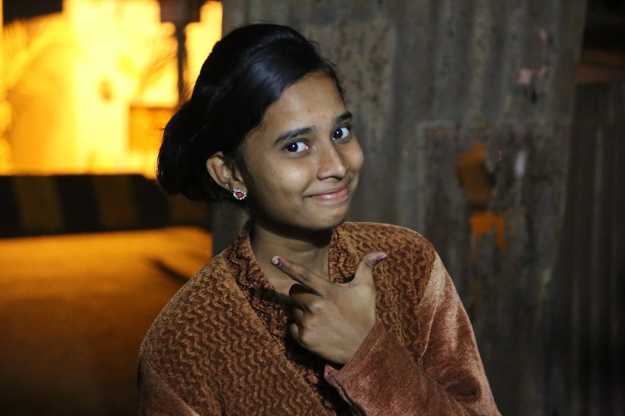 여느 인도의 여인들처럼 머리를 묶거나 땋지 않고 커트를 한 게 인상적이었어요.