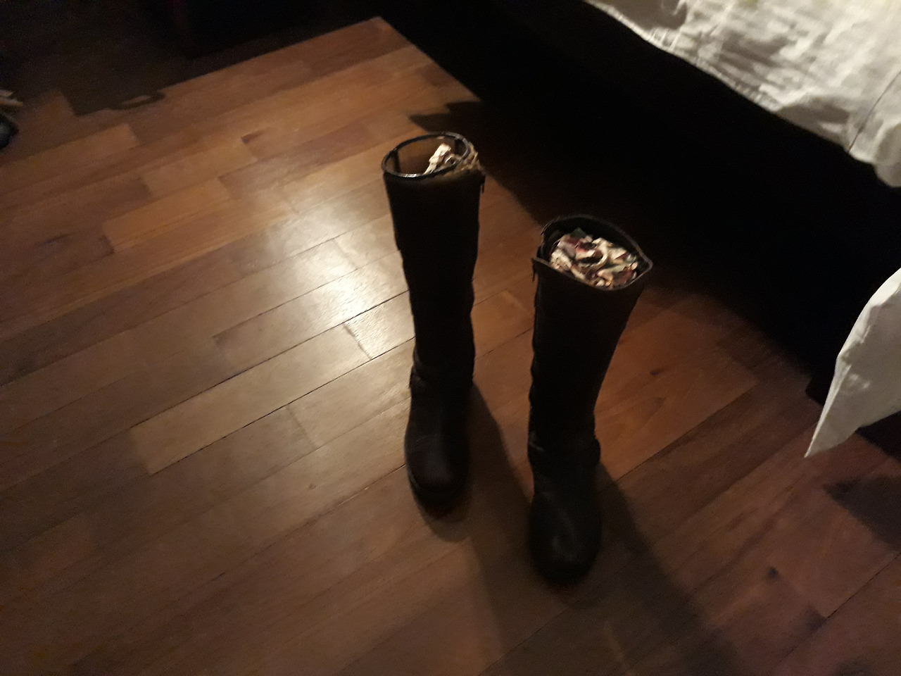신문을 정성스레 말아 끼워 놓은 것을 굳이 다 빼고 신어보았다.