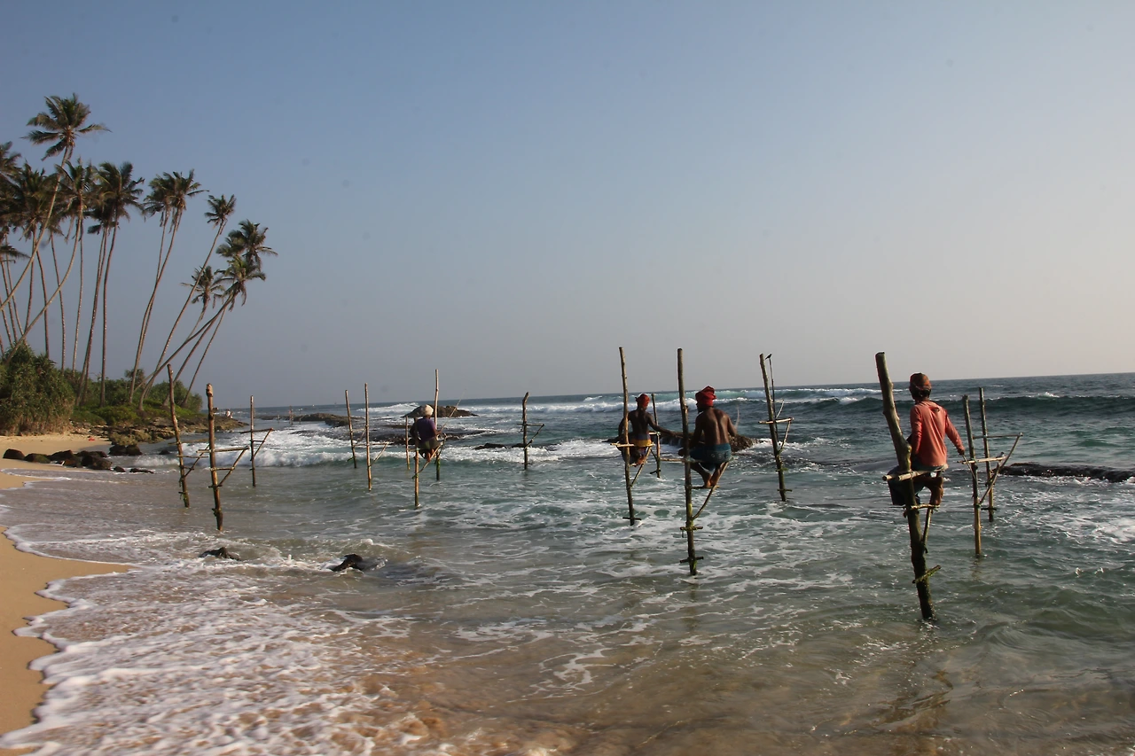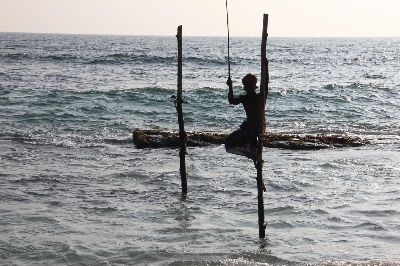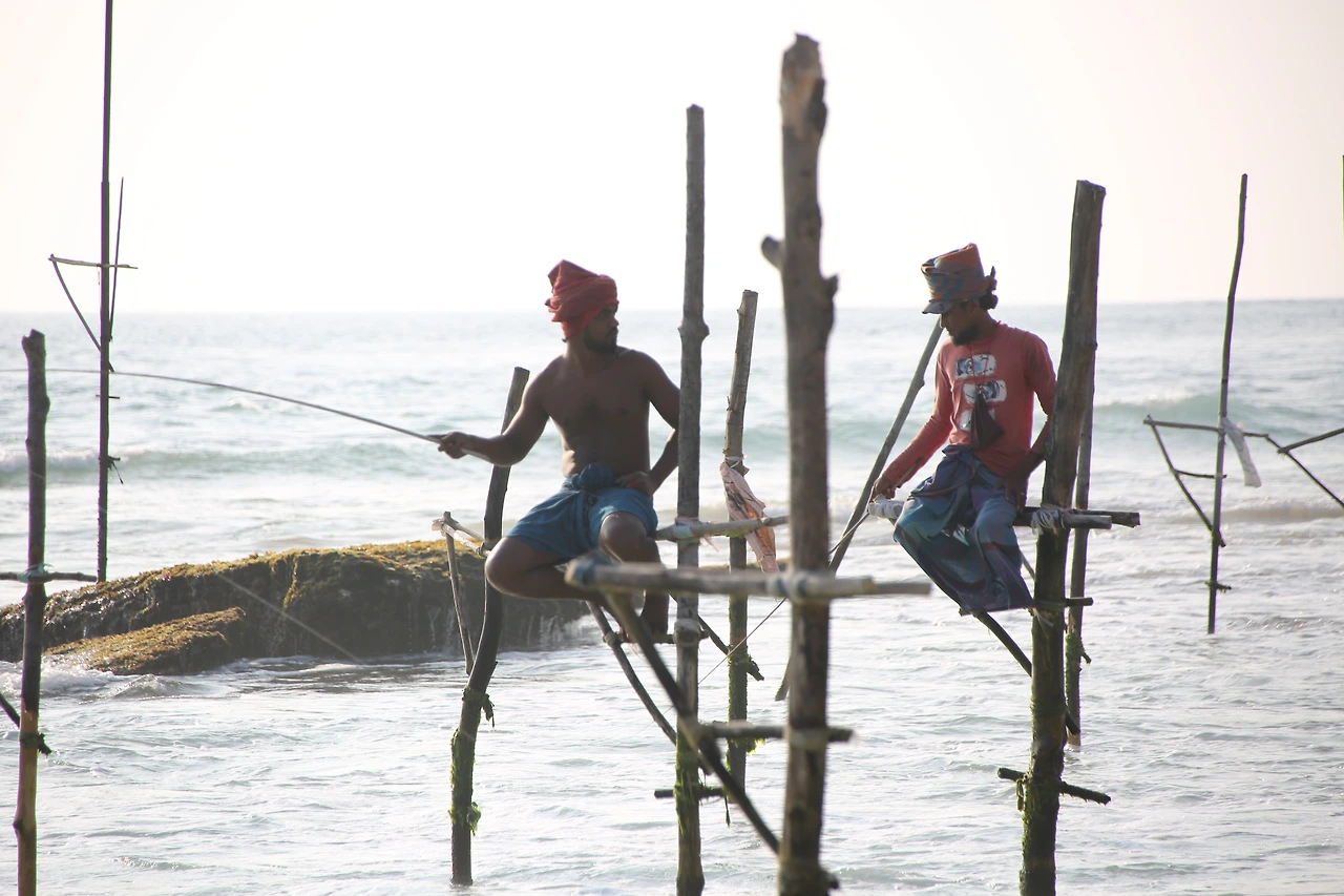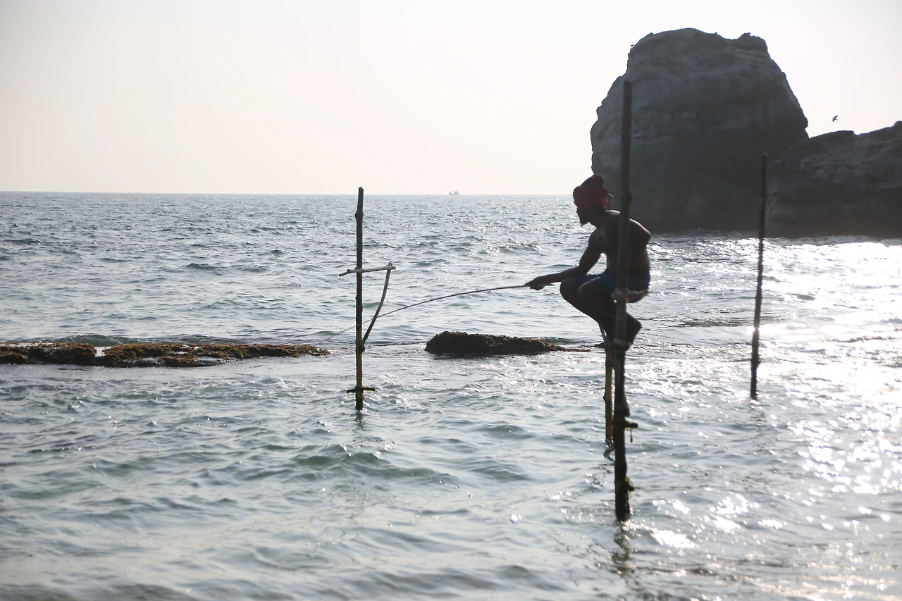 바다에 세워진 말뚝에 올라앉아 물고기를 낚는 '스틸트 피싱(Stilt Fifhing)'으로 스리랑카 남부에만 있는 전통적인 낚시법이다.