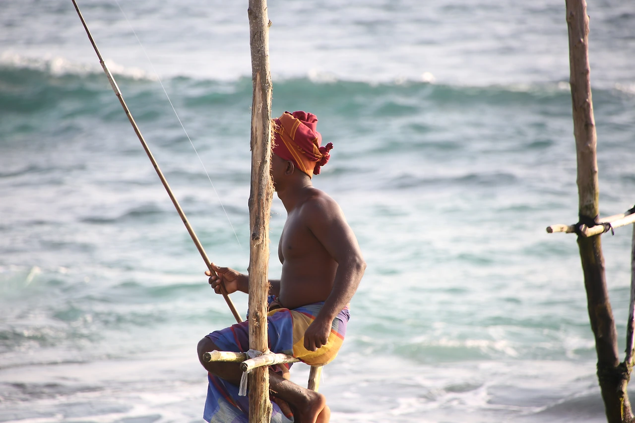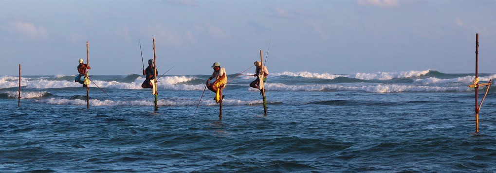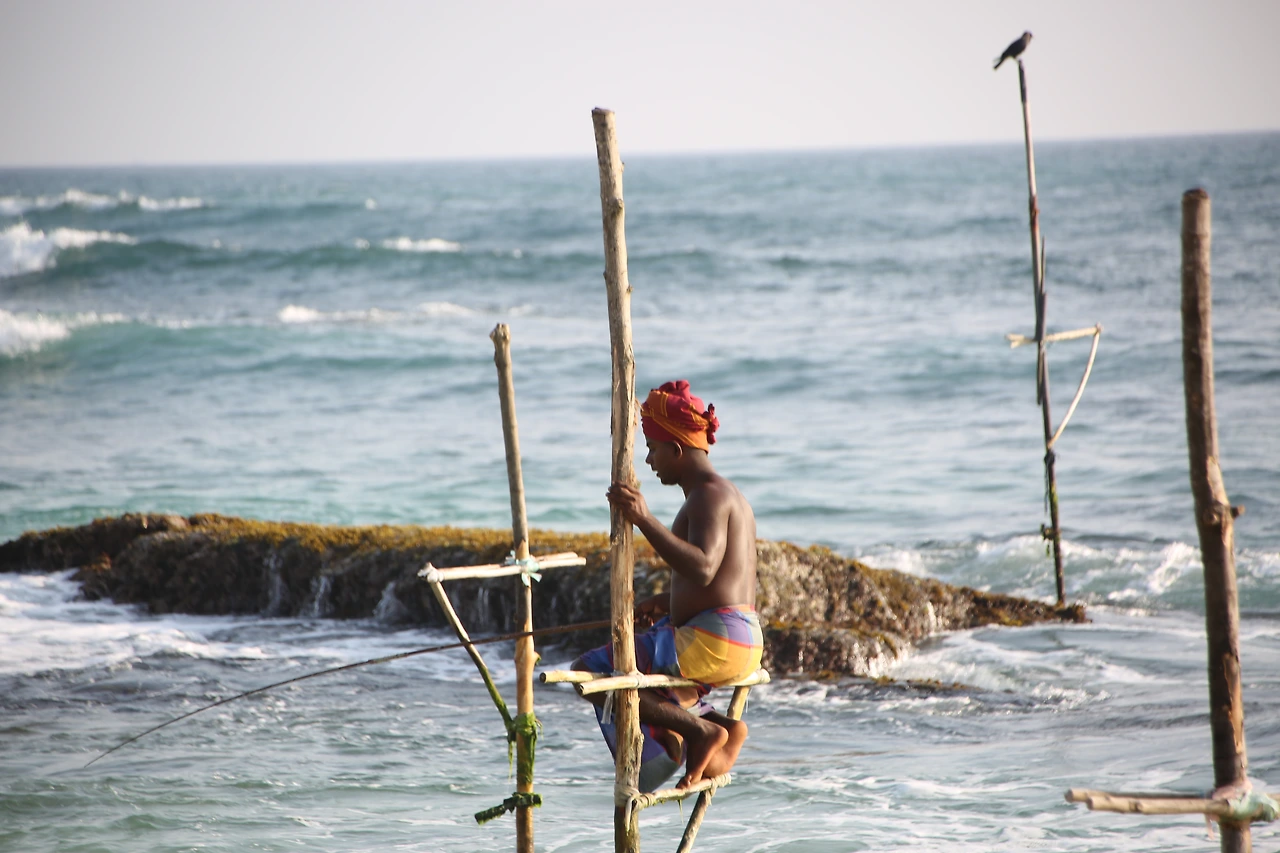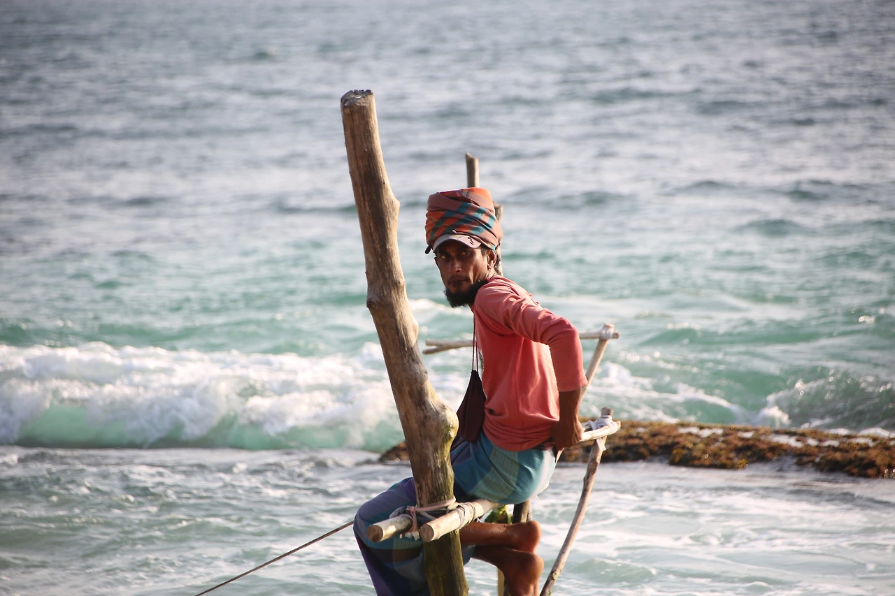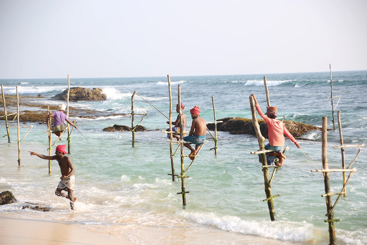 바다에 세워진 말뚝에 올라앉아 물고기를 낚는 '스틸트 피싱(Stilt Fifhing)'으로 스리랑카 남부에만 있는 전통적인 낚시법이다.