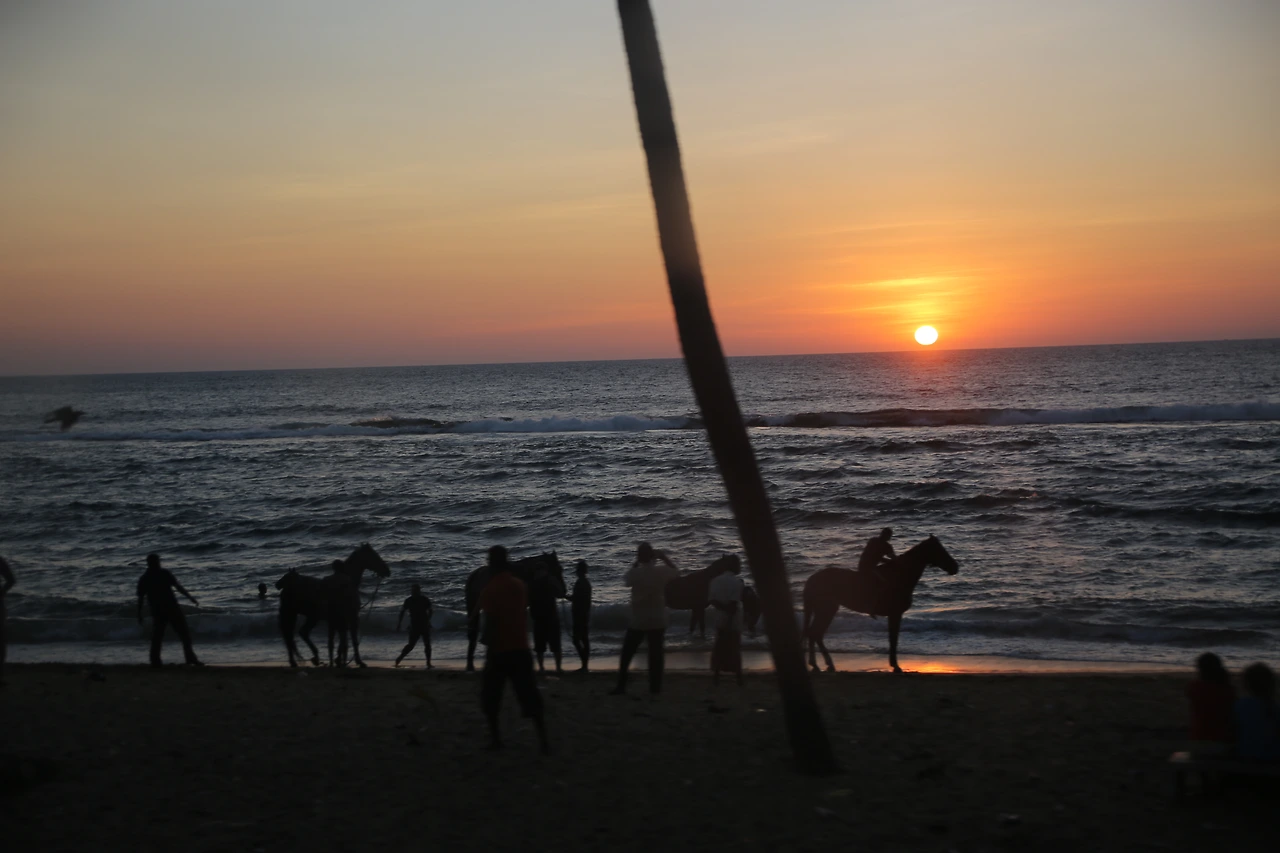 해변에서 말을 타는 사람이 지나가거나 바람에 나뭇잎이 휘어지기도 했다.