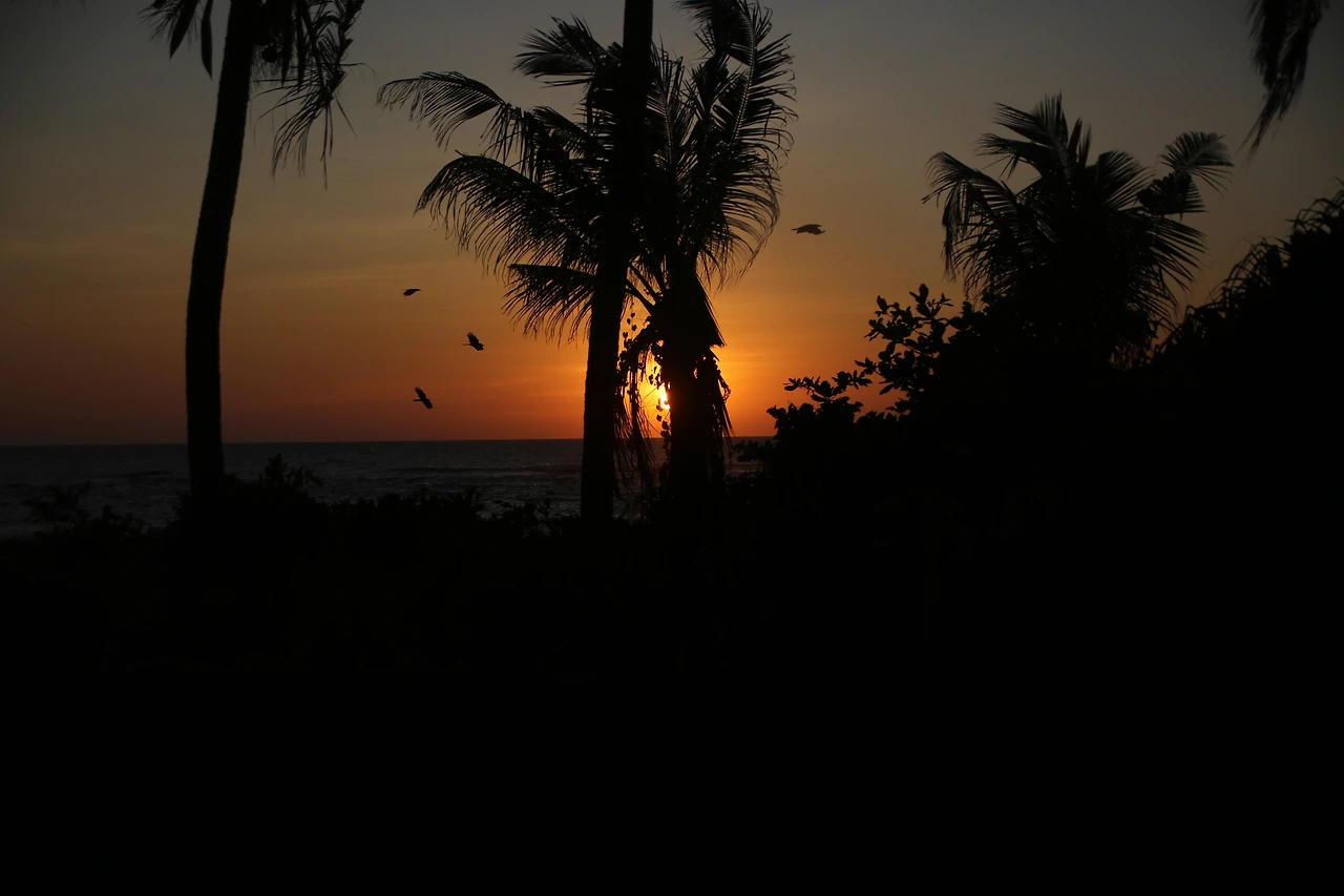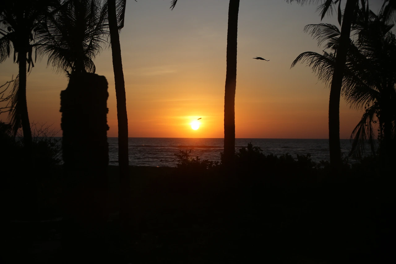검붉은 노을이 나무 파파야 사이로 무너지고 있었다.