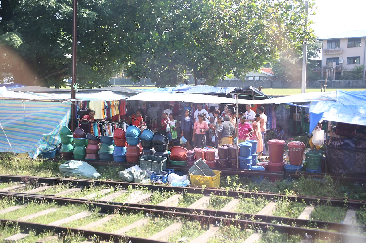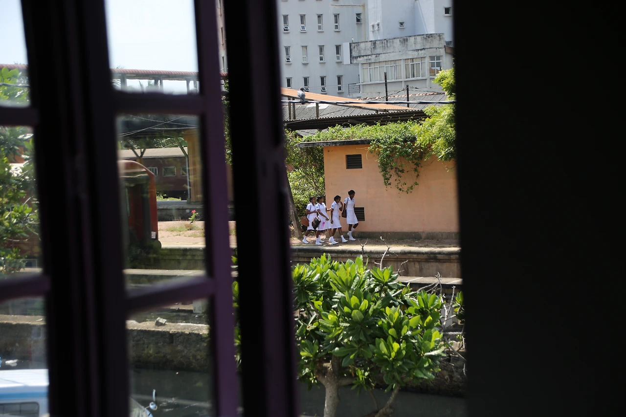 콜롬보 포트 역, 플랫폼을 확인하고 구름다리를 건너갔다.