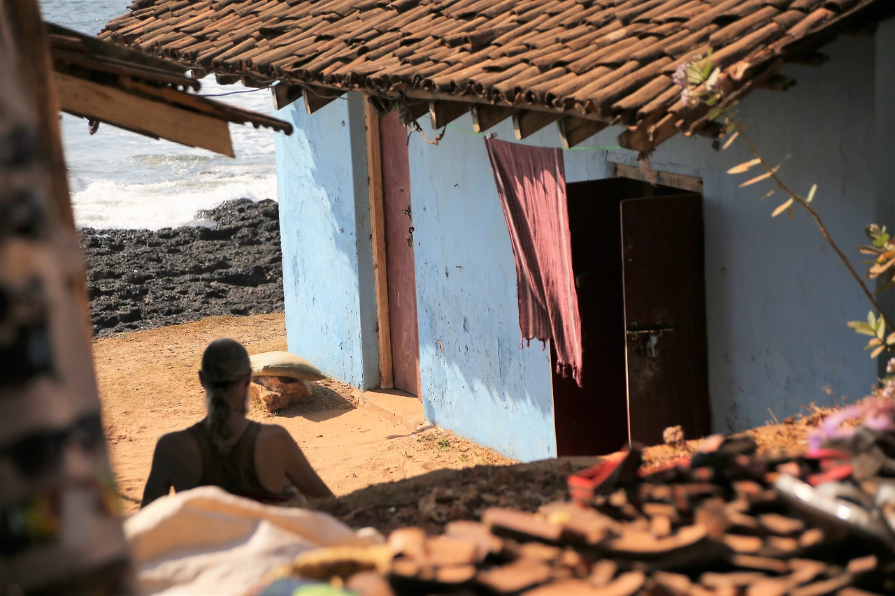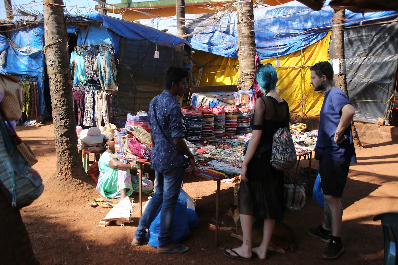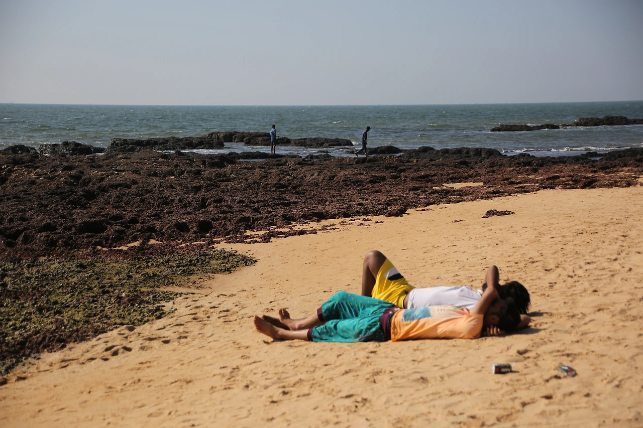 밝은 햇살과 노란 모래와 대조적으로 더 까맣게 느껴지는 인도인들의 피부로 인해 바다가 거무튀튀한 느낌이에요.