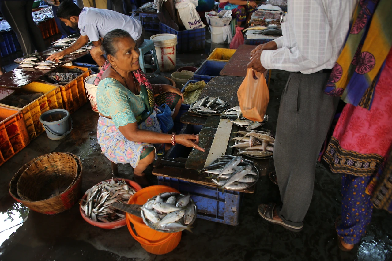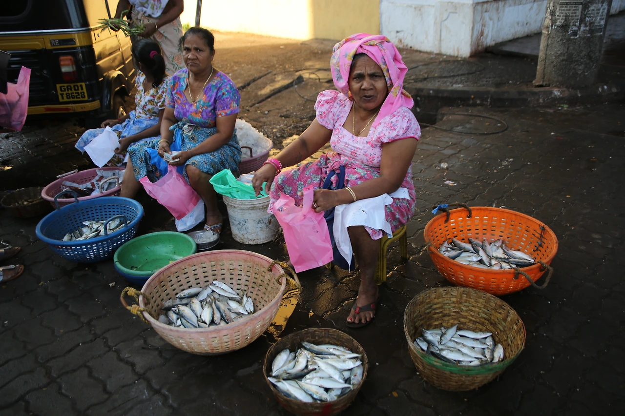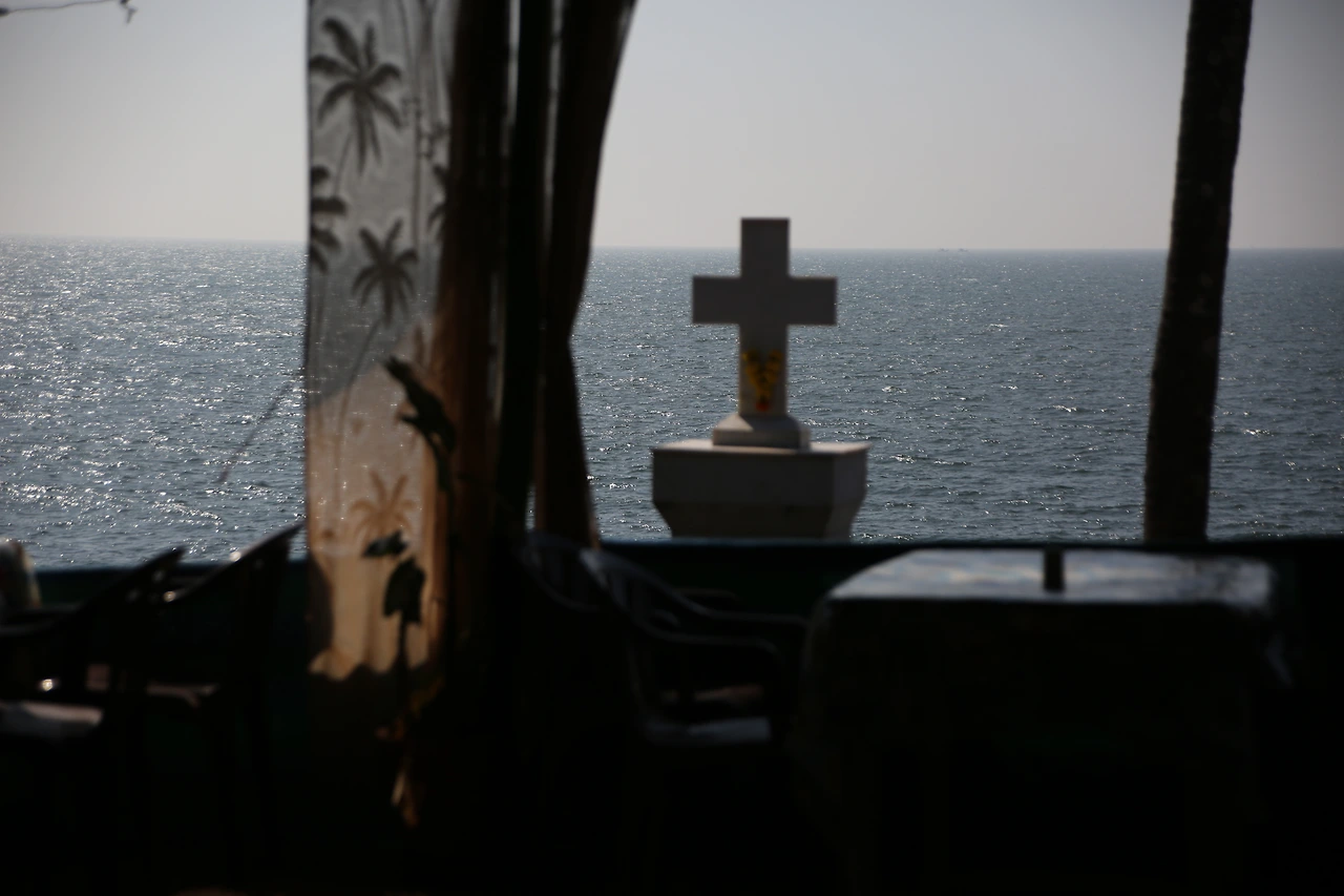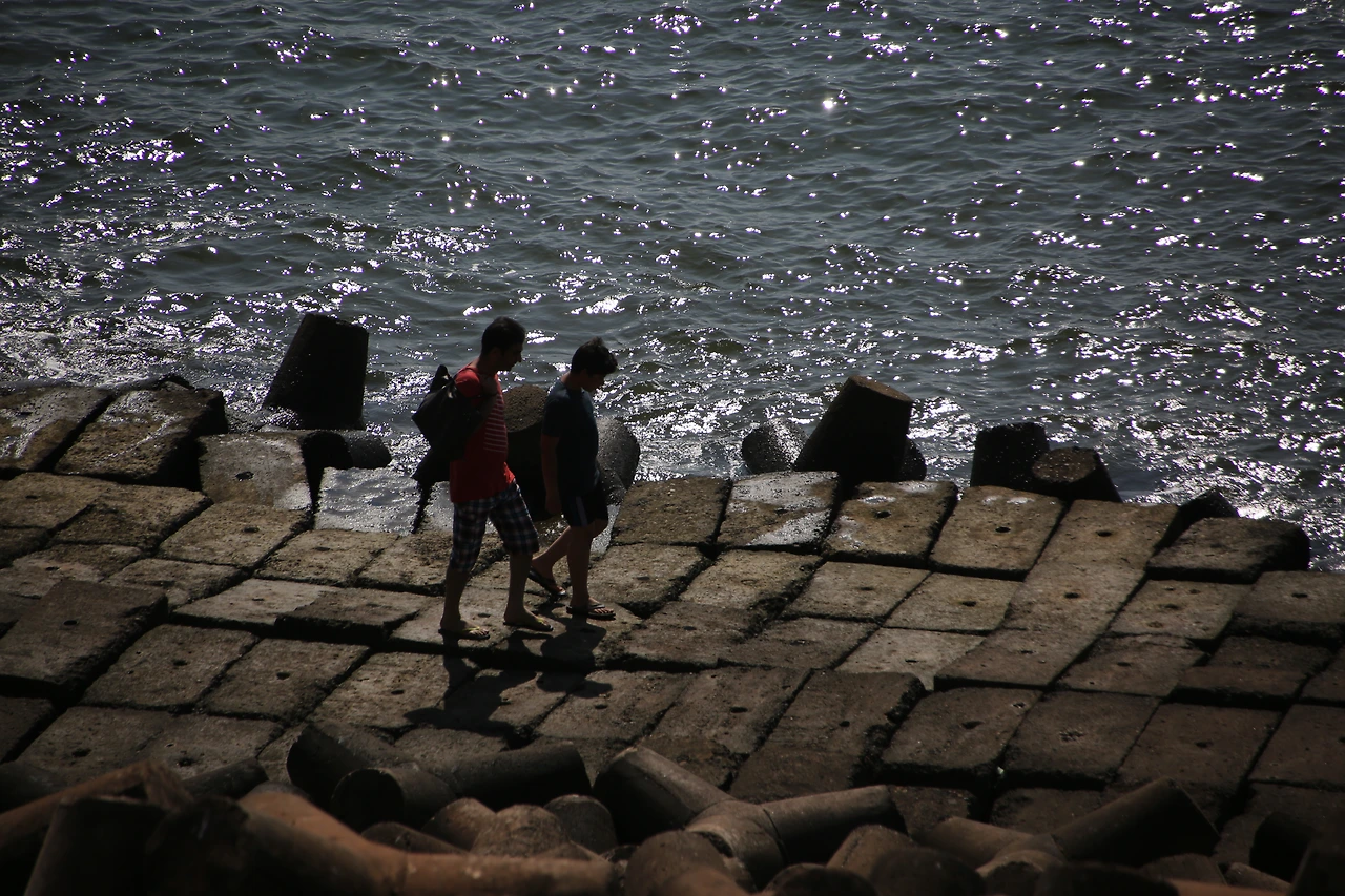 밝은 햇살과 노란 모래와 대조적으로 더 까맣게 느껴지는 인도인들의 피부로 인해 바다가 거무튀튀한 느낌이에요.