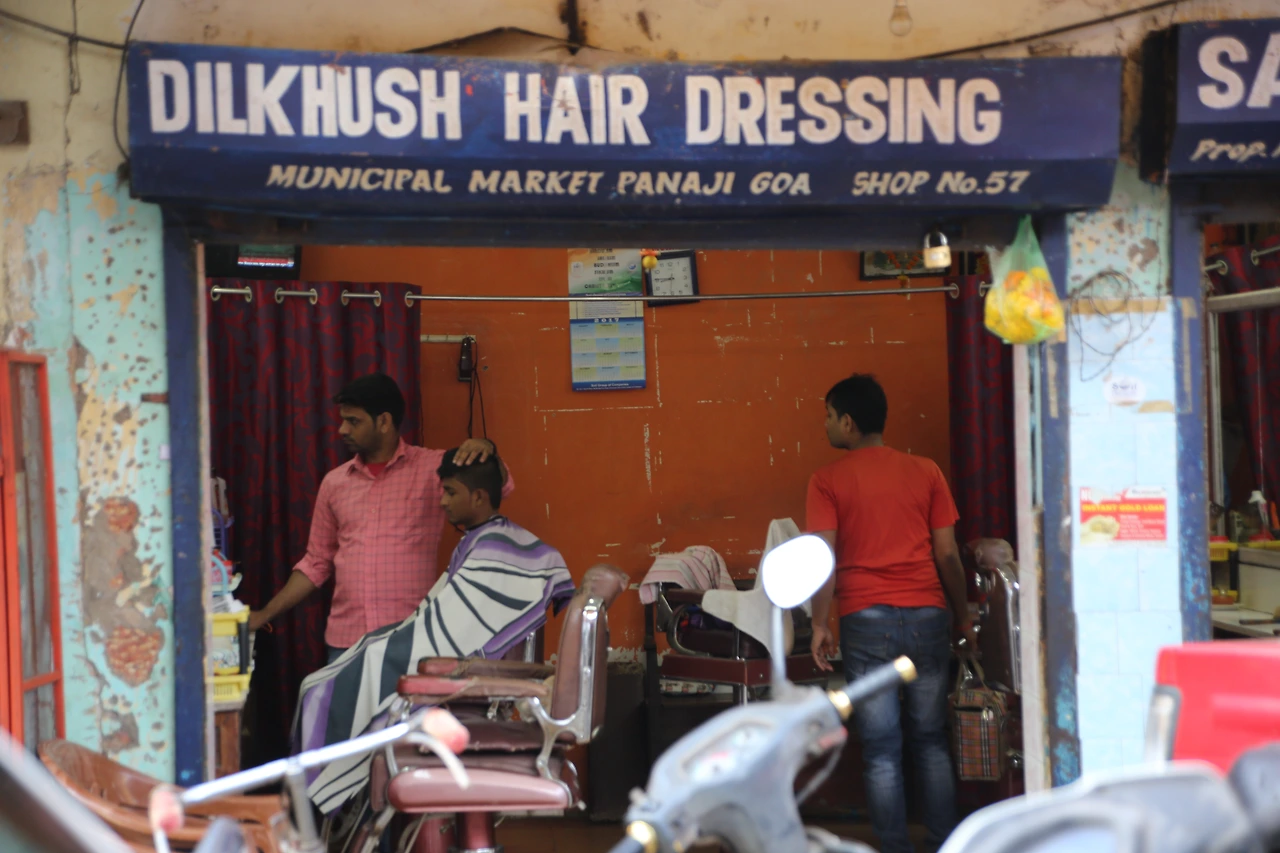 인도 여인들이 커트나 펌을 하지 않고 묶어나 땋아 내리기 때문에 미용실은 거의 찾아볼 수 없는 반면 이발소는 심심찮게 보입니다. 시장에도 어김없이 이발소가 있더군요.