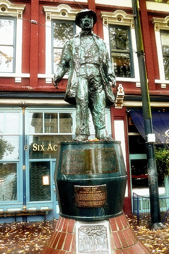 여름 여행이 좋은 건 어디나 흐드러지게 핀 꽃 때문이기도 합니다. 꽃잎이 작은 것들은 시들거나 말라있어도 별로 표시가 나질 않아요. 그저 올망졸망 어우러진 모습이 앙증맞게 예쁘지요. 가장 가까운 개스 타운으로 향합니다. 개스타운은 밴쿠버의 올드 타운이라고 할 수 있는 곳입니다. 1867년에 건설된 밴쿠버의 발상지로 알려져 있습니다. 당시 영국 상선의 선원이었던 존 데이튼이라는 사람이 맨 처음으로 이곳에 정착했고 그의 별명인 개시 잭(Gassy Jack)이 알려지면서 개스타운으로 불리게 되었다고 해요. 술통 위에 서 있는 그의 동상이 개스타운에 있네요. 초창기 개스타운의 풍물들이 거리 곳곳에 남아있어 당시의 모습을 엿볼 수 있습니다. 클래식한 향취가 물씬 풍겨 나는 빅토리아풍의 건물과 도심의 화려함이 조화롭게 어우러져 있어요. 개성 있는 장식과 분위기가 독특한 레스토랑과 카페들이 골목마다 늘어서 있고, 쇼핑을 위한 아기자기한 부티끄들이 눈길을 끄는군요.
