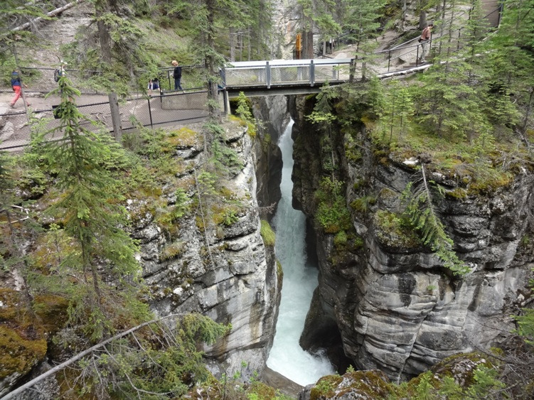 피라미드 호수에서 멀린 협곡까지는 20분, 협곡에는 총 6개의 다리가 놓여 있는데 '제2다리'부터 시작해서 '제3다리'와 '제4다리'를 둘러본 후 '제1다리' 쪽으로 나오는 코스로 돌면 약 한 시간 정도 걸린다고 한다. 멀린 협곡(Maligne Canyon)은 멀린 호수에서 흘러나온 물이 애서배스카 강으로 흘러들어가면서, 거센 물살이 주변 지형을 깎아내 만들어낸 협곡으로 깊은 곳은 높이가 50m나 된다. 다리 위에서 보는 협곡은 아찔하면서도 장관이다. 자연 앞에선 할 말을 잃게 된다. 욕심 없이 그저 묵묵히 제 갈길을 흐르는 물, 바람 따라 파이고 부딪히며 제 살을 아낌없이 내어주는 바위, 어찌 보면 자연만 한 철학자가 없으리라는 생각이다.