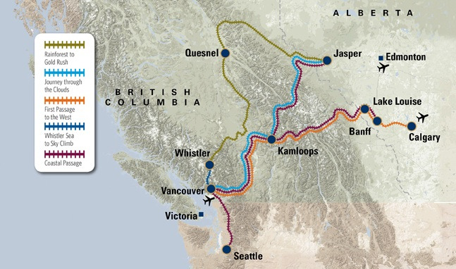 사촌들이 살고 있는 캠룹스 (Kamploops)에서 비아 레일을 타고 재스퍼까지 간다. 기차를 타는 9시간 30분 동안이 어떻게 흘러가는지 모른다. 세상의 온갖 푸름을 쏟아놓은 듯한 풍경에서 헤어 나올 길이 없다. 이름 모를 호수의 에메랄드 빛깔의 물과 온갖 크고 작은 초록의 날개를 달고 있는 나무들, 눈 덮인 산, 바람이 굴리고 있는 하얀 구름들이 아름답다.