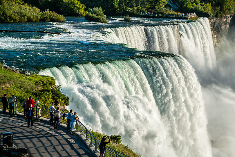 다음 날 아침 일찍 그레이하운드를 타고 나이아가라로 향할 것이다. 일찍 일어나는 새가 벌레를 많이 잡는다고 여행의 마지막 날이니만큼 하루를 쏠쏠하게 지내보자는 생각이 들지 않을까 한다. 악마의 목구멍이라 불리는 이과수 폭포는 브라질과 아르헨티나의 국경에 있다. 270여 개의 폭포가 2.7km에 걸쳐 흐르며 평균 낙차가 70m나 된다고 한다. 세계에서 가장 긴 빅토리아 폭포는 아프리카의 잠비아와 짐바브웨의 국경을 가르며 떨어지는데 최대 낙차가 108m나 된다. 그리고 나이아가라 폭포는 높이가 55미터에 폭은 671미터에 달한다. 폭포는 고트 섬에 의해 두 부분으로 나뉘는데 동쪽은 아메리칸 폭포이며 왼쪽은 캐나다의 호스슈 폭포이다.
