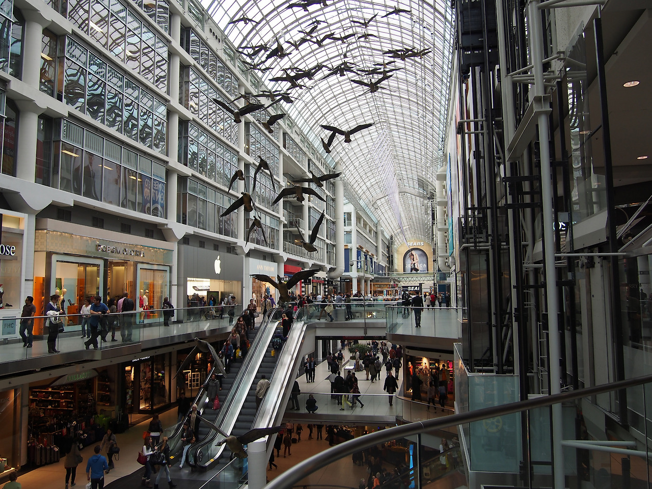영 스트리트에 위치한 대규모 쇼핑몰 이튼 센터도 빼놓을 수 없는 곳이다. 마치 미래 과학 공상 영화에서 볼법한 커다란 규모가 시선을 압도하는 건축물이다. 2개 블록에 걸쳐 300여 개의 상점이 있는데 밀라노의 두오모 성당 옆에 있는 빅토리오 에마뉴엘 2세 갤러리아를 본떠 만들었다고 한다. 유리 천장과 회랑 구조로 만들어졌으며 상점 곳곳에 독특한 장식들이 눈길을 끌 것이다. 쇼핑몰 내부에는 시어스 백화점과 서점, 레스토랑 등 각종 편의시설 및 쇼핑시설이 입점해 있어 쇼핑 이외의 다양한 활동을 할 수 있다니 사람들의 발걸음에 묻혀 흐르듯 걸어보려 한다.