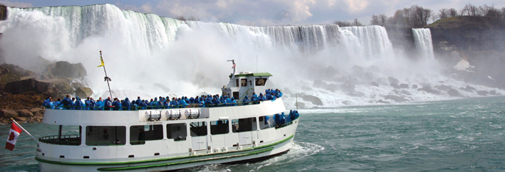폭에서 쏟아진 물이 흐르는 위로 미국과 캐나다를 잇는 다리가 있는데 그 이름은 레이보우 브릿지다. 두 나라는 각각 폭포로 다가가는 유람선을 운항하는데 미국의 크루즈에 안개의 하녀(Maid of mist)라는 재미있는 이름이 붙여있다. 캐나다 쪽의 혼 블로어 유람선에 타는 사람들은 파란색 비옷을 입고 미국 쪽 유람선을 탑승한 사람들은 빨간색 비옷을 입는다.