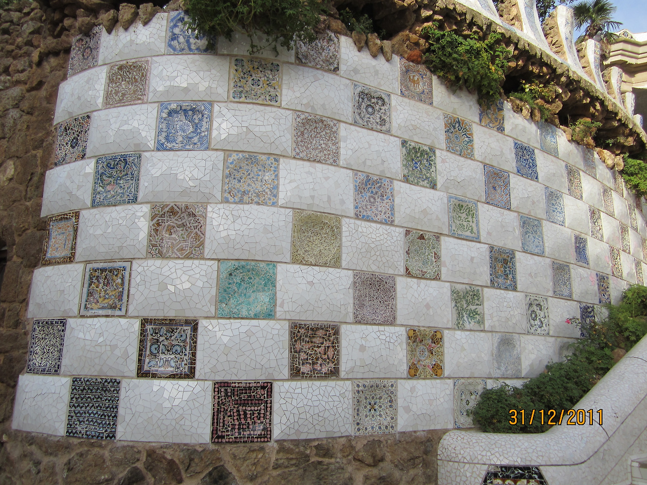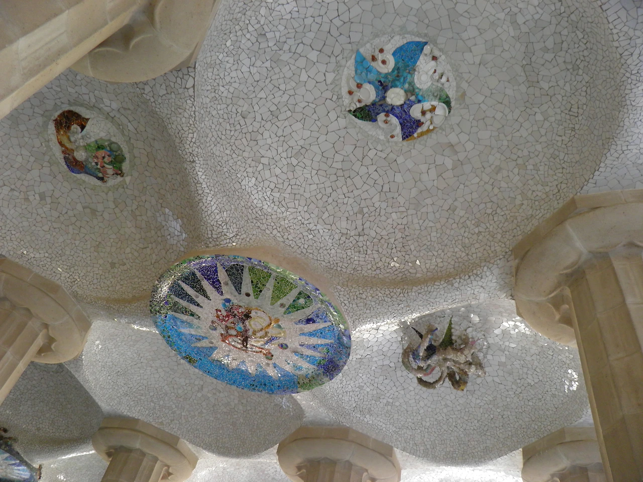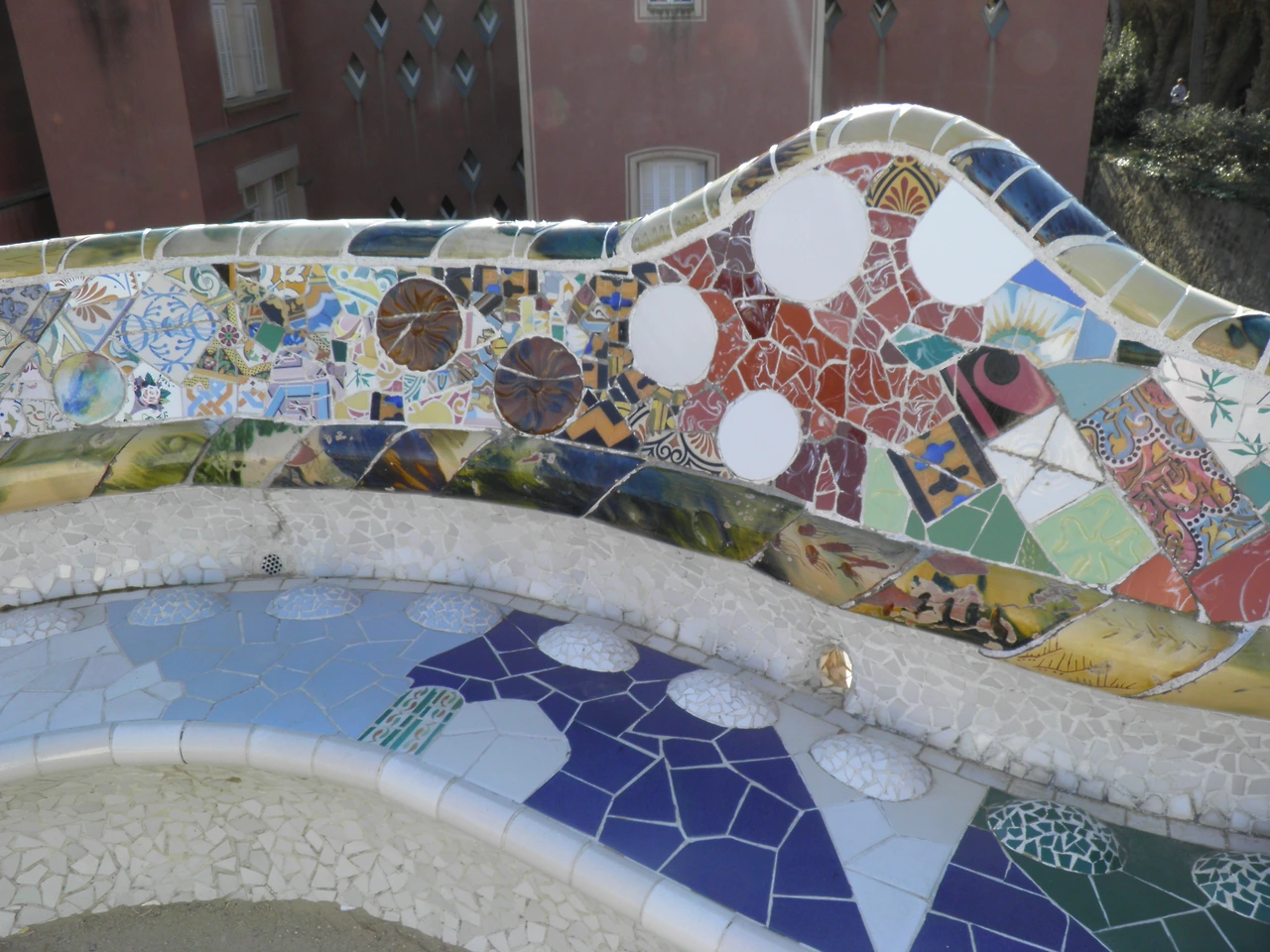 이탈리아 피렌체의 메디치 가문이 단테, 갈릴레오, 다빈치, 미켈란젤로, 마키아벨리 등 수많은 예술가들을 후원한 것처럼, 가우디에게도 이상적인 후원자가 있었다. 가우디의 순수성을 캐내 그의 천재성을 세상에 알렸던 스승이자 후원자는 가우디보다 6살 위인 에우세비 구엘 남작(Eusebi Guel 1846~1918)이다. 구엘은 직물업계의 거장이었다. 그는 자신의 재산을 가우디가 천재성을 발휘하는 데 투자했다. 구엘은 자신의 저택을 지을 때 자금에 구애받지 않도록 배려했다. 설계자에 대한 신뢰가 있었기에 가능하였던 것이다. 아치형 천장과 장식으로 가득 찬 독창적인 방, 조각 타일로 만들어진 굴뚝 지붕은 당시 건축의 기본 틀을 바꾸어 버릴 정도로 혁신적이었다. 하지만 14년간의 공사기간에도 불구하고 계획대로 진척되지 못했고, 결국 구엘이 죽은 뒤 그의 가족이 시에 땅을 기증하면서 구엘 공원이 되었다고 한다. 86개의 도리스식 기둥이 있는 콜로네이드 홀은 그리스 극장이라는 중앙광장의 반을 떠받치고 있다. 깨진 도자기 파편으로 만든 천장 장식이 천국의 크리스털인 양 아름답다. 타일 벤치에 손을 짚고 내려다보면 ‘헨젤과 그레텔’에 나오는 과자의 집을 연상시키는 물결모양의 집이 보인다. 자연석을 쌓아 올려 야자수를 닮은 돌기둥을 만들고, 유약을 발라 구운 모자이크 타일과 석고 틀을 떠서 만들었다는 세상에서 가장 긴 벤치 등, 100년 전에 만들어졌음이 도저히 믿기 어려울 정도로 고소하게 아름다웠다.