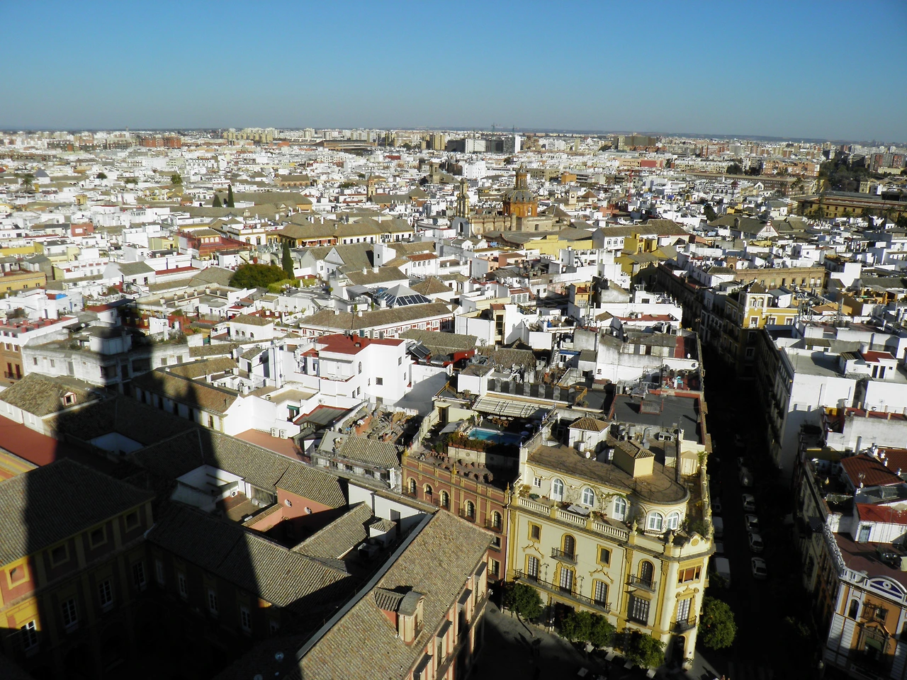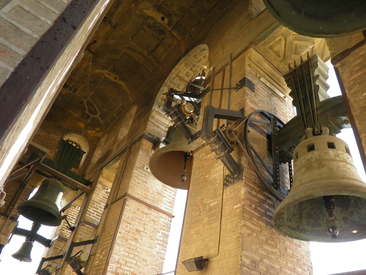 무려 7,000개의 파이프가 달린 엄청난 크기의 바로크 양식 오르간이 눈을 현혹했다. 성당이 무너질까 봐 한번에 20% 정도만 사용한다는 파이프오르간이었다. 여러 개의 파이프 오르간이 있었는데 파이프의 모양과 장식이 하나하나 다르면서 모두 아름다웠다. 악기라고 하기보다는 건축의 일부이며 예술작품이었다. 소년합창단이 부르는 미사곡에 색을 입혔을 오르간의 소리가 소용돌이치듯 느껴졌다. 하지만 그 황금의 유물들을 착취당했던 원주민들의 피눈물을 생각하면 화려함에만 마냥 취해 감탄할 일이 아니었다. 성당은 고딕 양식이지만 모스크였던 시절의 자취들을 품고 있었다. 그중에서도 가장 대표적인 것이 히랄다 탑이다. 탑에 오르는 길은 계단이 아닌 나선형 도로 형태였는데 왕이 말을 타고 꼭대기까지 올라가게 하기 위함이었다고 한다. 헉헉대며 34개의 계단참을 거쳐 꼭대기에 다다르니 기도시간을 알리는 28개의 크고 작은 종들이 달려 있다. 종탑에 오르니 갑자기 뜬금없이 노트르 담 드 파리의 종지기 콰지모도가 생각났다. 높은 곳에서 내려다본 세비야의 풍경은 상큼하면서도 노곤했다. 강한 햇빛에 아른아른 펼쳐진 도시엔 소인국처럼 느껴지는 사람들이 고물고물 움직이고 있었다.