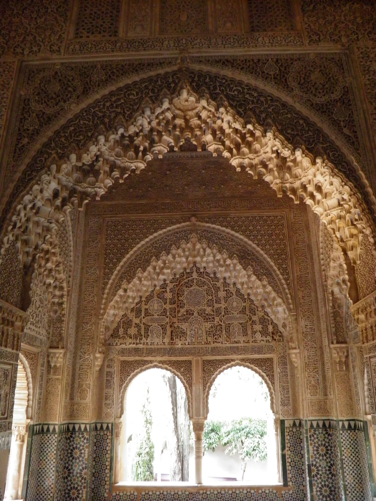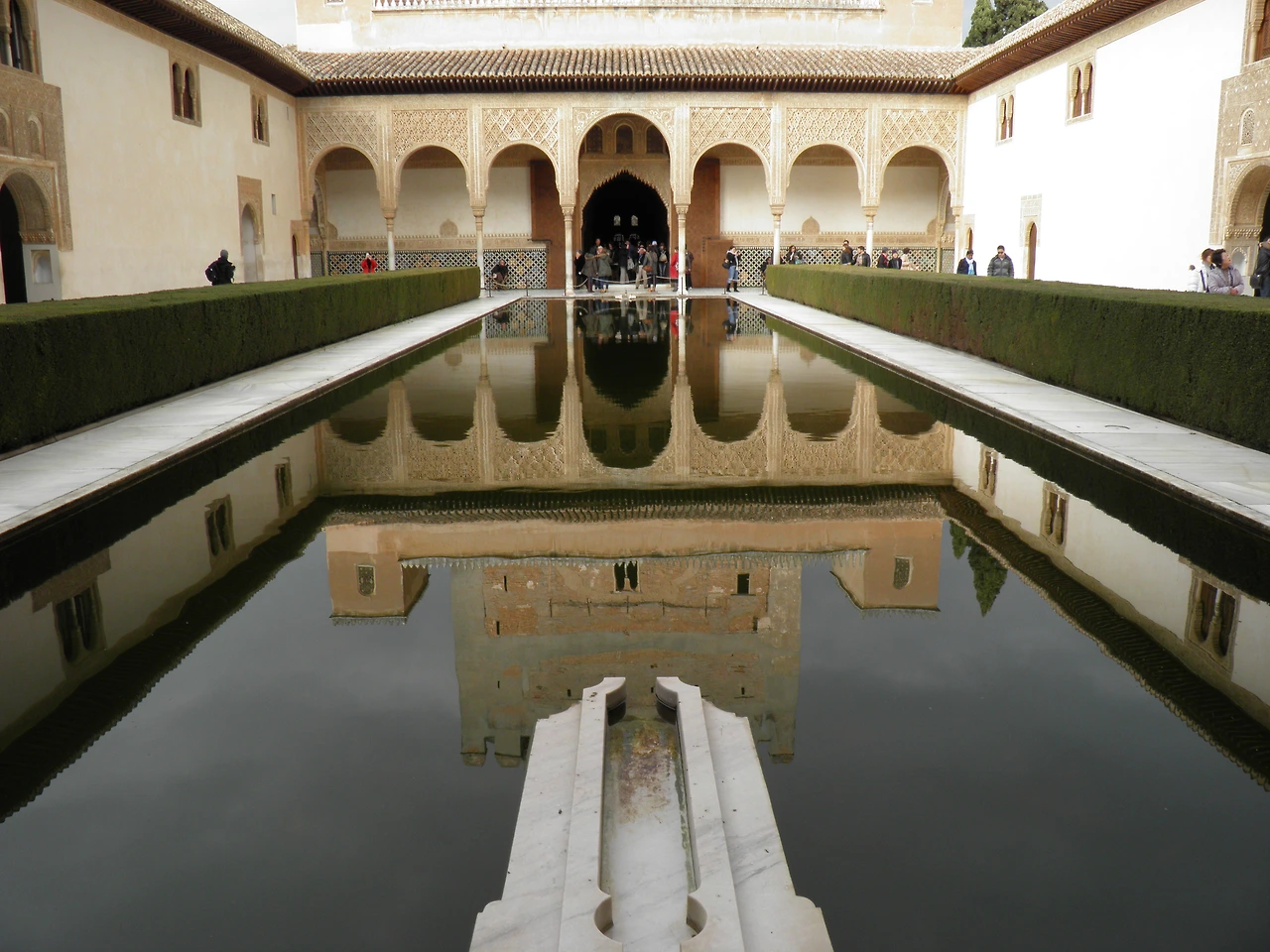 알람브라 궁전은 겉보기는 수수했지만 안으로 들어설수록 비현실적인 아름다움의 세계로 인도했다. 알람브라는 일출과 일몰, 초승달에서 보름달까지 달빛에 따라서 궁전의 분위기가 달라진다. 타지마할과 같은 이치다. 인도가 타지마할을 지을 때 아주 큰 영향을 준 것이 알람브라 궁전이라니 그럴 만도 하다. 알람브라 궁전에서 가장 뛰어난 중정으로 손꼽히는 안뜰은 완벽한 대칭구조이다. 중앙에 있는 사각형의 연못은 거울처럼 주위의 건축물들과 하늘의 풍경을 잡아내는 스크린 역할을 하고 있었다. 사방이 막혀있는 정원은 하늘을 거울처럼 비추어 외부와의 소통을 이루어내는 듯하였다. 정원에 있는 분수는 동력을 전혀 사용하지 않고 자연 수압을 일정하게 유지시켜 만든 것이라니 지혜가 놀랄만하다.