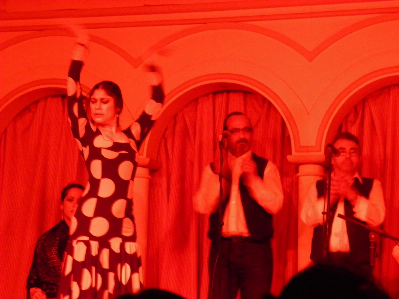 포르투갈의 파두 역시 느리지 않지만 어둠이 가득한 노래였는데 느낌이 비슷했다. 플라멩코는 춤(바일레 플라멩코)뿐 아니라 노래(칸테 플라멩코)와 기타(토케 플라멩코)를 포함했다. 그중 가장 중심이 되는 것은 의외로 칸테 플라멩코. 그러니까 화려한 춤보다 심금을 울리는 노래에 귀가 먼저 가는 것이었다. 집시들의 슬픔과 죽음, 좌절 등을 주제로 삼기도 하고 사랑과 정열을 표현한다고 한다. 검은 셔츠에 헤어 젤을 발라 번들거리는 고수머리 남자의 춤은 대단히 파워풀했다. 마룻바닥을 향해 내리치는 구두 굽 소리는 심장을 후려치며 거친 호흡이 객석까지 전달되어 뜨거웠다. 플라멩코는 춤을 추는 사람뿐만 아니라 기타를 연주하는 사람, 노래를 부르는 사람, 그리고 이를 지켜보는 관객들이 모두 하나가 될 때 비로소 그 예술적 가치를 발휘하게 된다고 한다. 우리는 추임새처럼 올레를 외치면서 무대와 하나가 되었다. 기쁨과 슬픔의 노래와 춤, 기타와 캐스터네츠, 어찌해도 따라 하기 어려운 손뼉 리듬에 쥐어짜는 표정, 폭풍처럼 몰아치는 발놀림에 빠져들었다. 지상에서 가장 정열적이고 농염한 춤은 그렇게 한 시간 동안 계속되었다. 바쁘게 몰아치는 하루 여정의 피곤함으로 이미 상기된 얼굴은 플라멩코 리듬에 취하고 상그리아(sangria) 한 잔에 더욱 붉게 물들었지만 나쁘지 않은 기분은 무엇인지 알 수 없었다.
