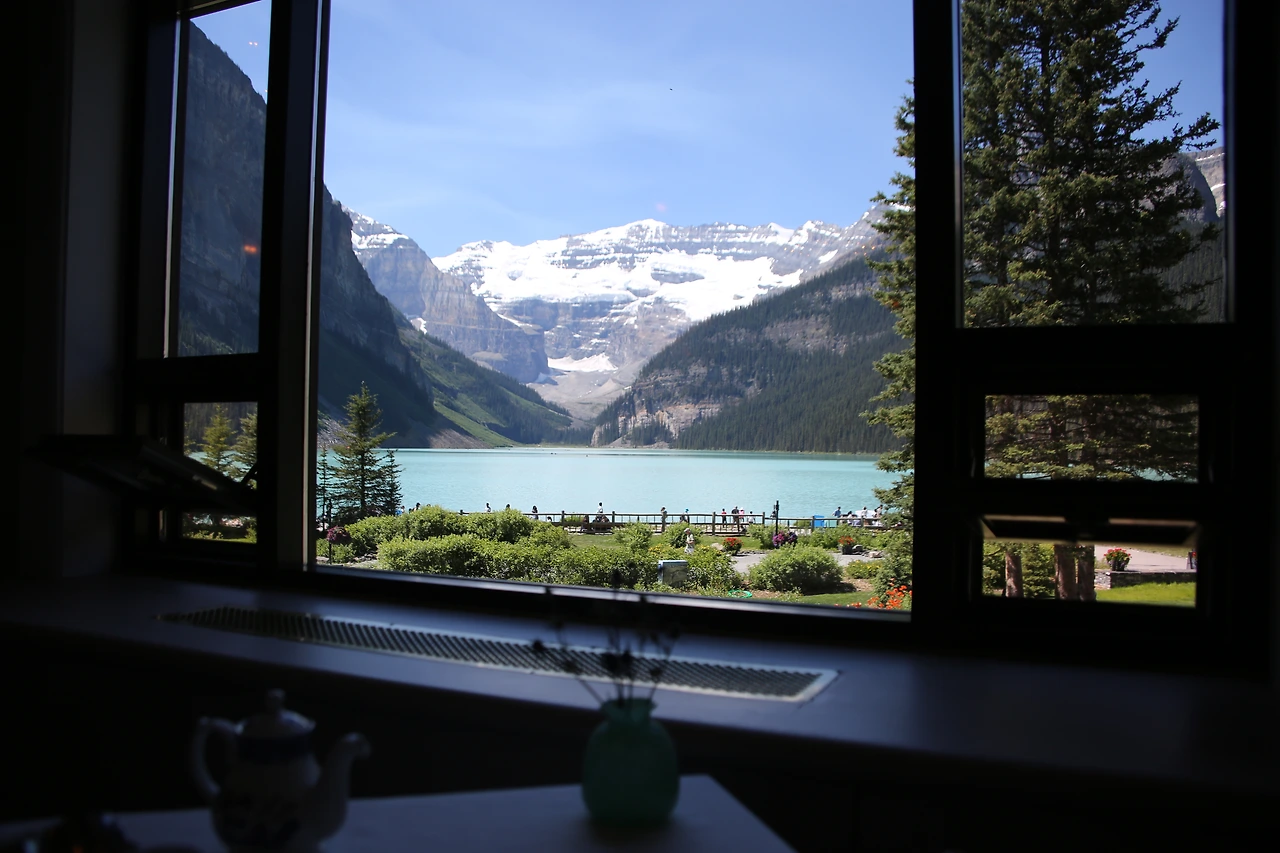 디어 로지는 나무로 지어진 소박한 호텔로 한눈에 나이가 많은 집이라는 걸 알 수 있었습니다. 외부는 물론이고 내부 역시 아늑하고 품위가 있습니다. 1923년에 건축되었으니 거의 100년이 되었네요. 처음엔 찻집으로 지어졌고 1925년에 6개의 방이 있는 호텔로 변경해서 조금씩 객실 수를 늘려 지금에 이르렀더군요. 소유주이자 설립자인 거트 루드 크로스비 (Gertrude Crosby) 여사는 어릴 때 부모를 따라 영국에서 왔습니다. 그녀의 어릴 때 모습과 암벽을 타거나 스키를 타는 옛 흑백 사진이 정겹게 걸려 있습니다. 호텔에서 루이스 호수를 배경으로 서있는 빅토리아 빙하가 한눈에 보이니 입지적인 조건도 아주 좋아요.