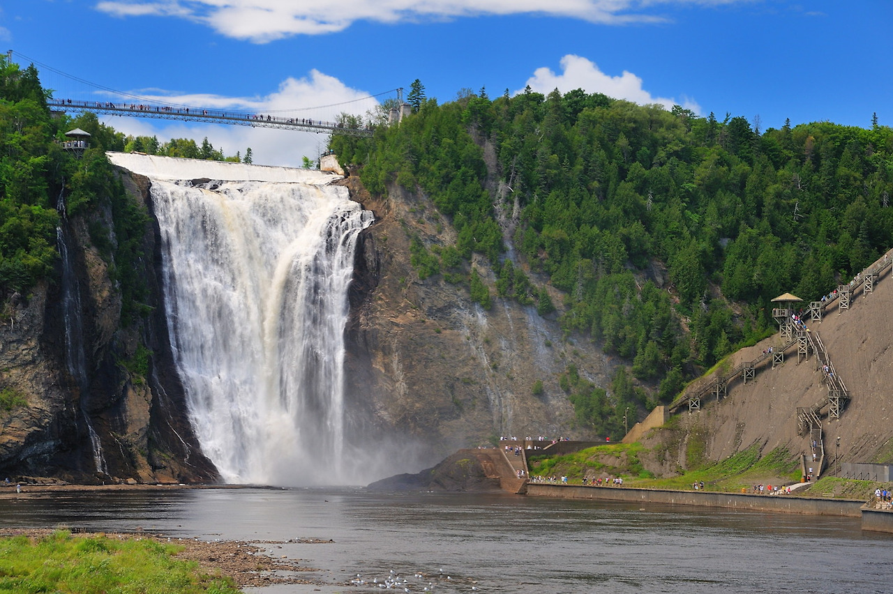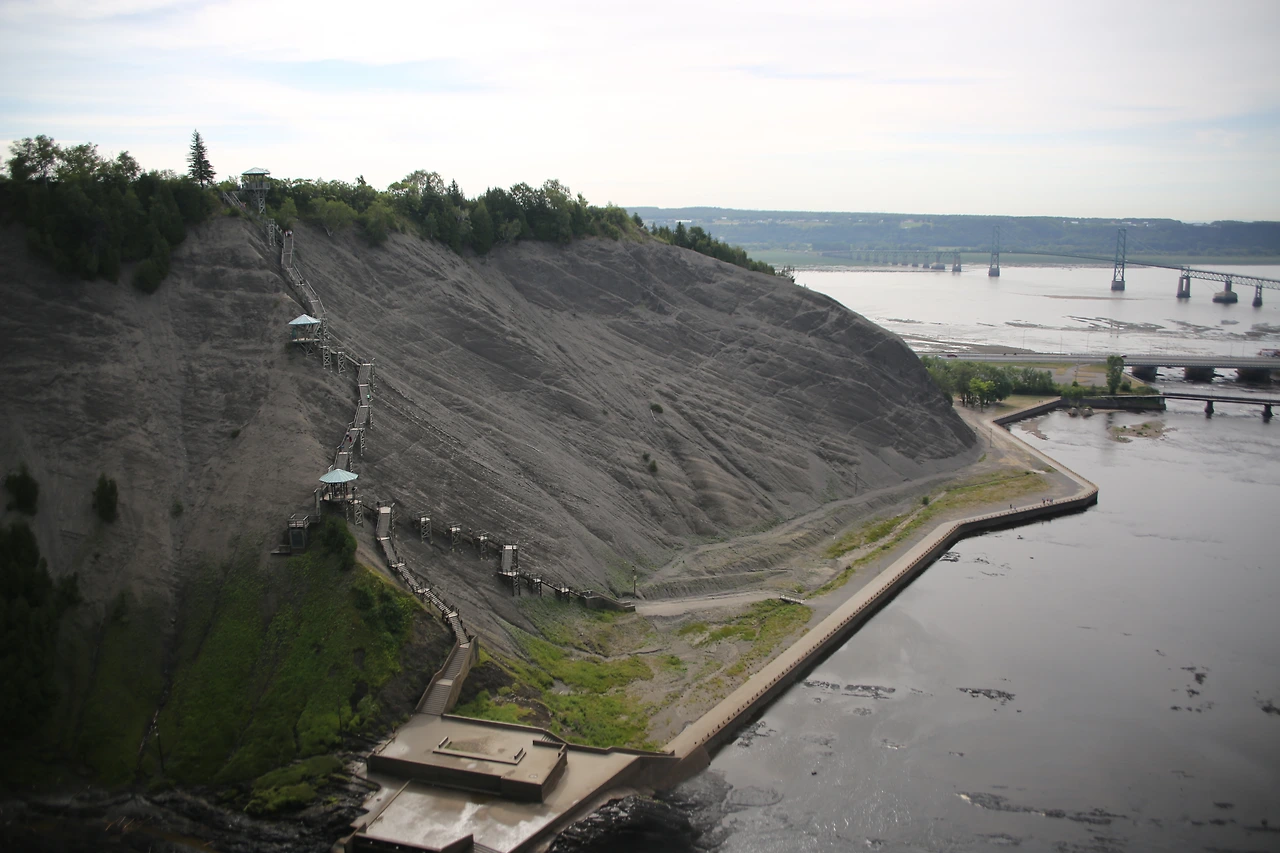 '몽모렌시(Montmorency)'는 프랑스 탐험가 샤무엘 드 샹플랭이 붙인 이름으로, 자신의 후원자이며 1620년부터 1625년까지 뉴 프랑스의 총독을 지냈던 몽모렌시 공의 이름을 따 온 것이라 해요. 폭포로 가는 길 오른편 아래쪽에 세인트 로렌스 강이 흐르고, 강 위에 놓인 긴 다리도 보입니다. 그 다리가 끝나는 곳에 살짝 보이는 초록빛 섬이 오를레앙입니다. 오를레앙은 1535년 프랑스 탐험가 쟈끄 까르티에가 첫발을 디딘 후 프랑스인들이 최초로 정착하기 시작한 곳이므로 프랑스계 캐나다인들은 그곳에서 조상의 발자취를 찾는다고 해요.